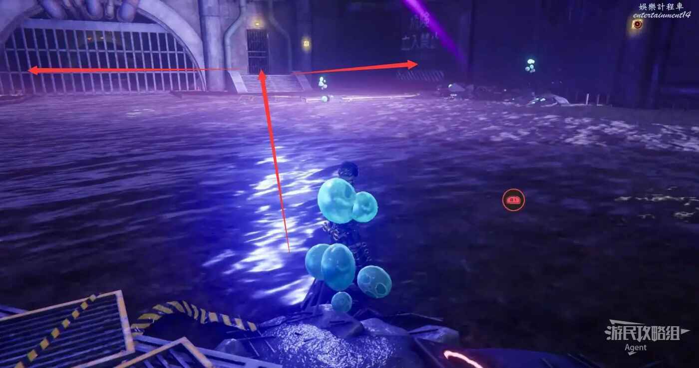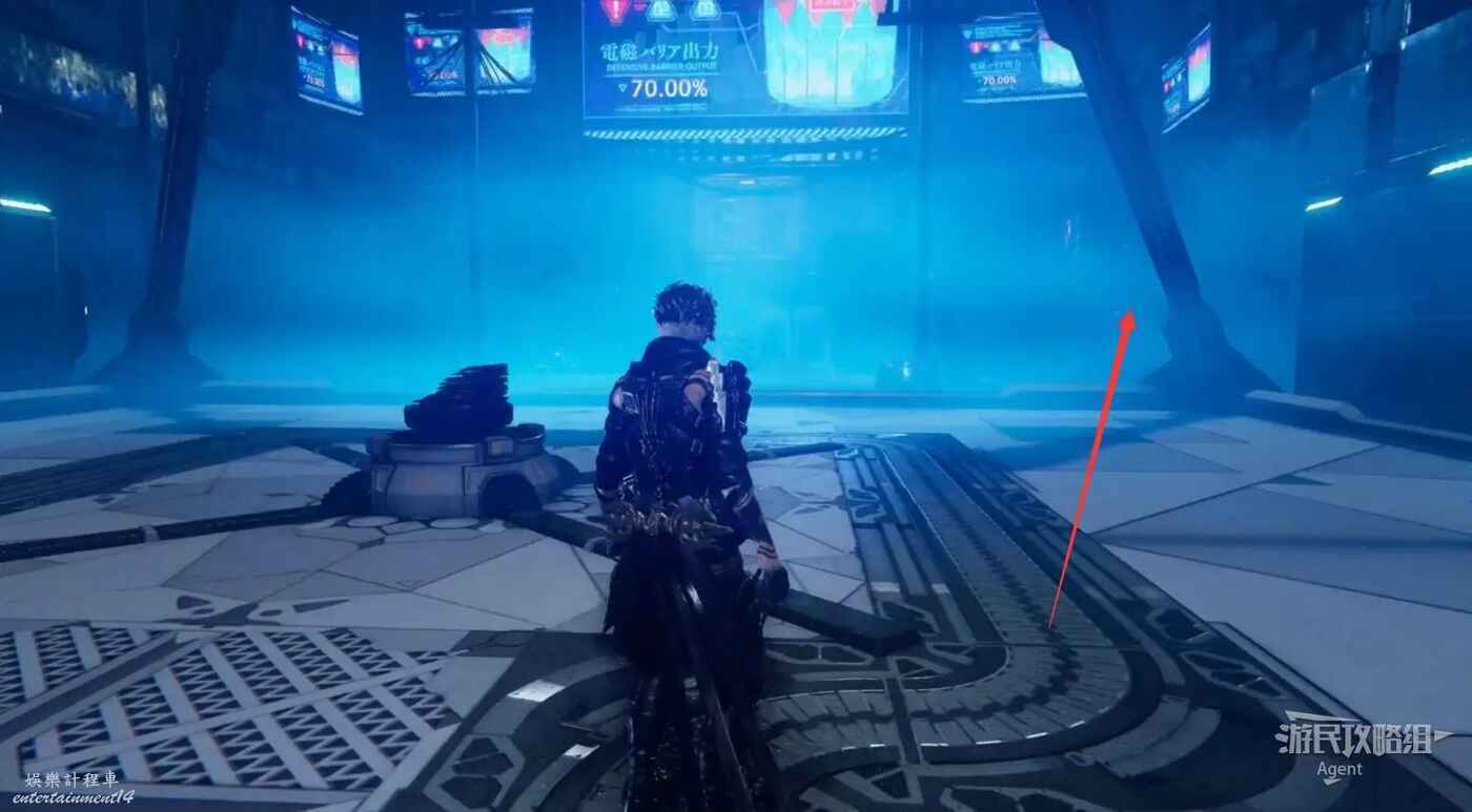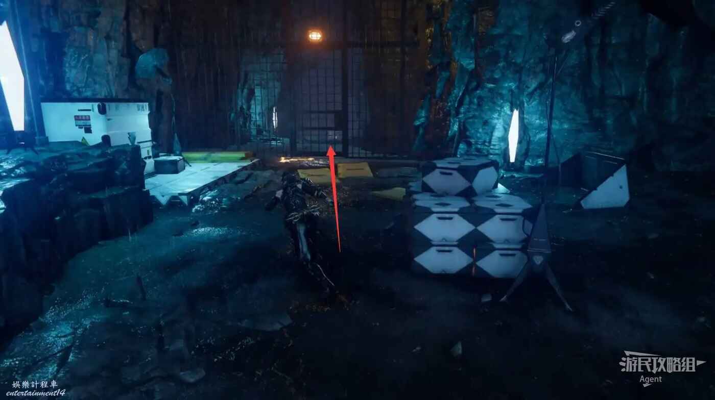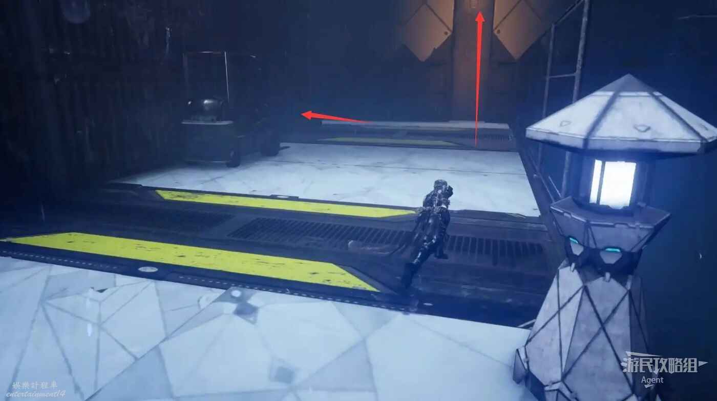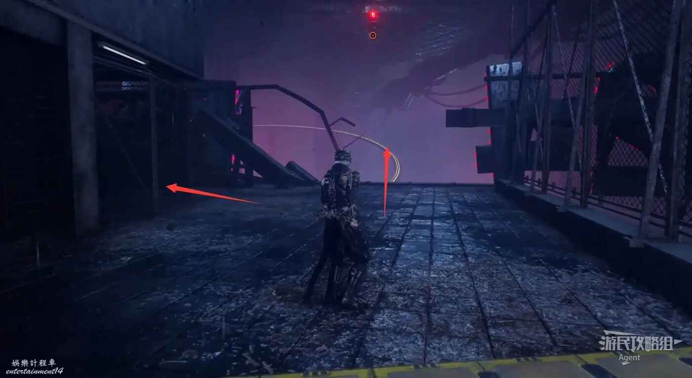 乘電梯上來,出去右邊有個寶箱,然後滑過軌道,消滅敵人後進入金字塔破壞發電機。