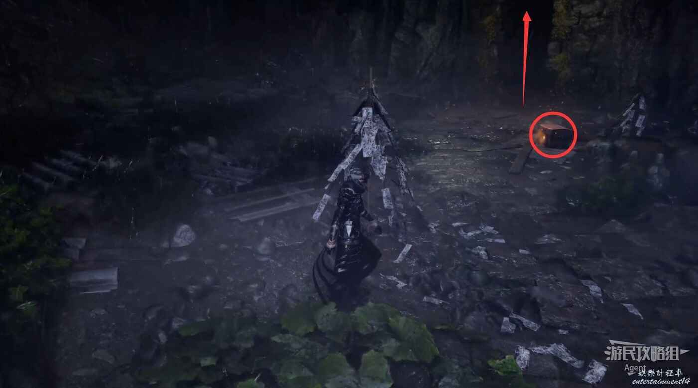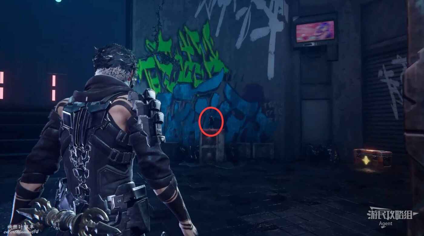 往前走有個寶箱。注意地上發光的痕跡,那是目標逃跑留下來的。