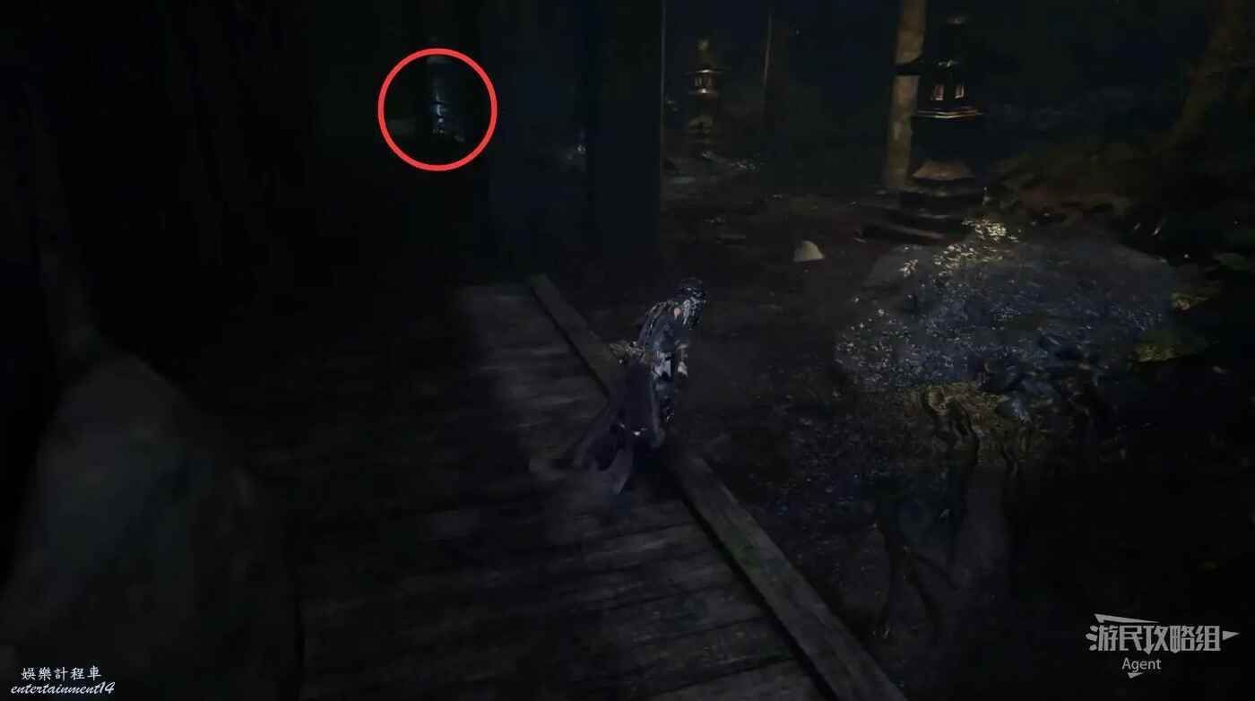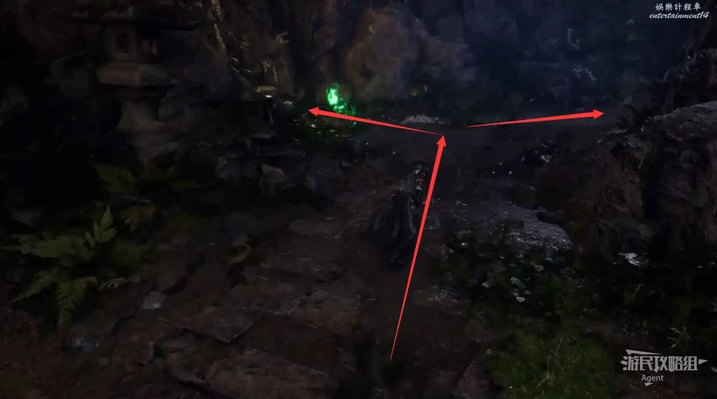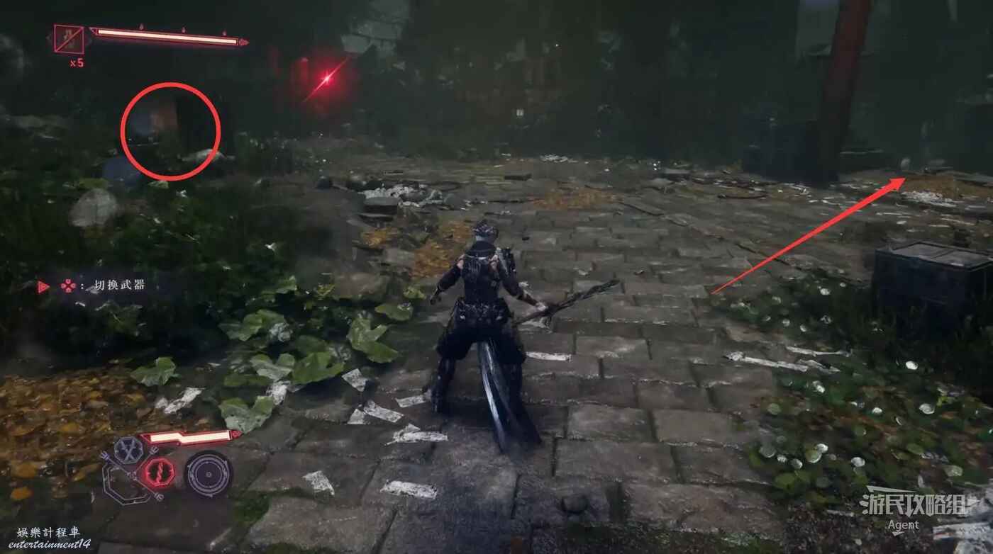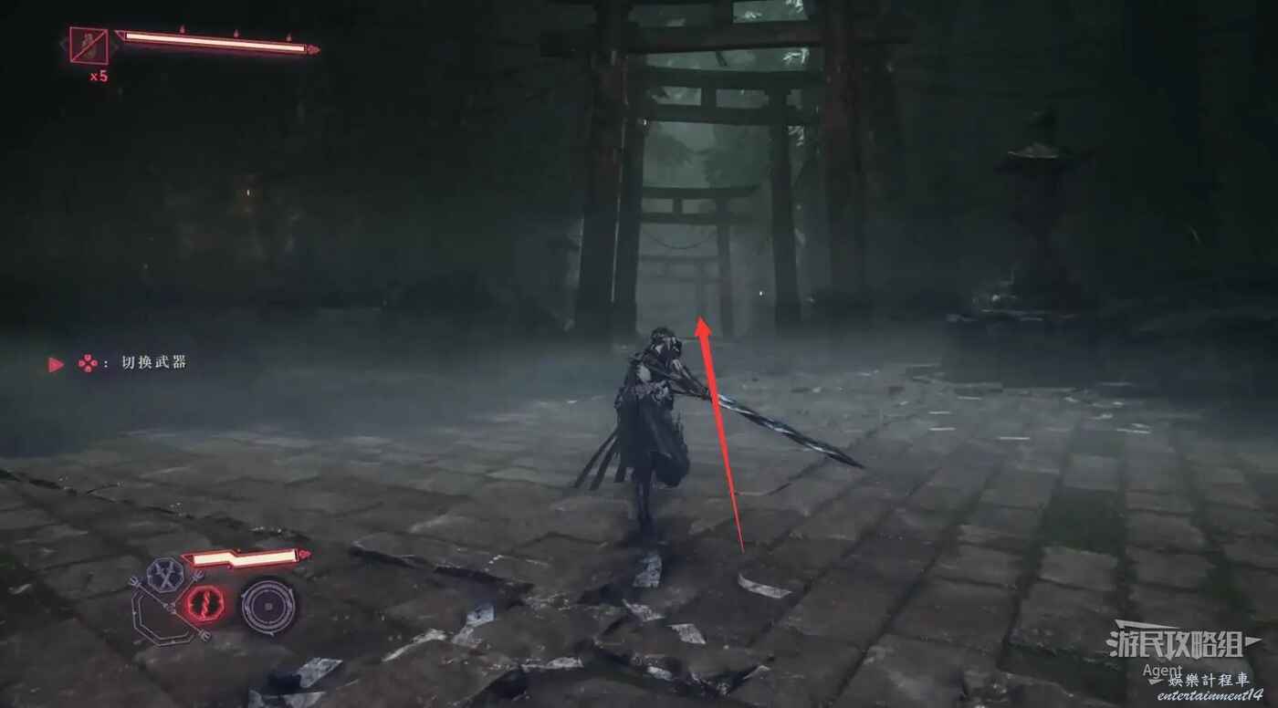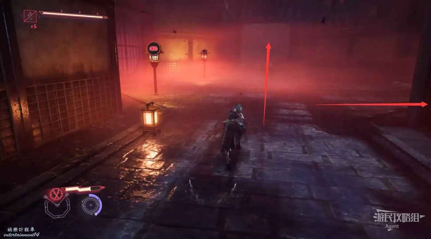 前方院子有敵人先不管,等下探索完右邊岔路自然會到那裡。