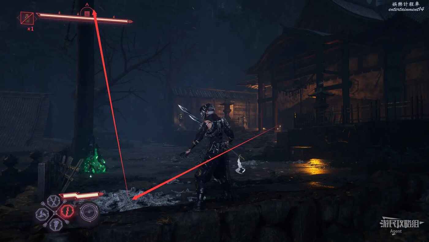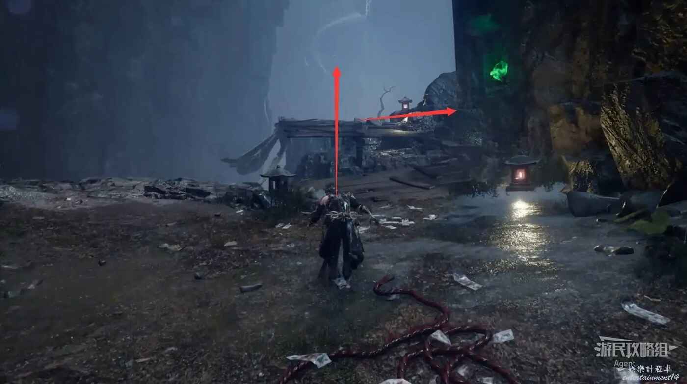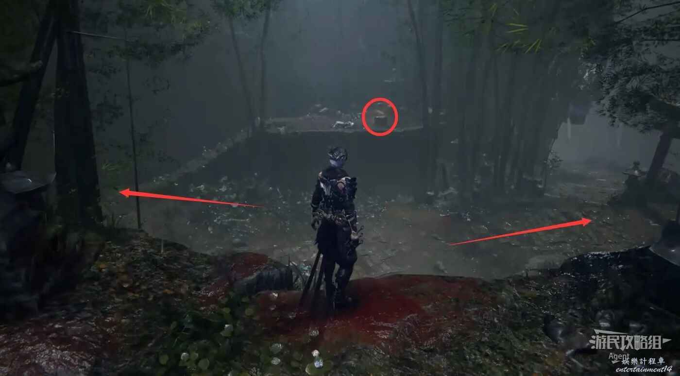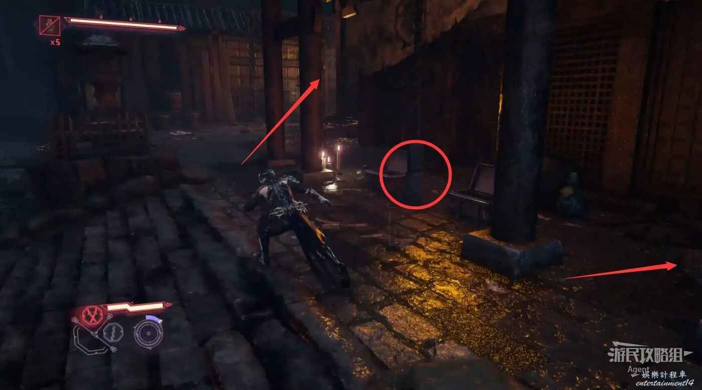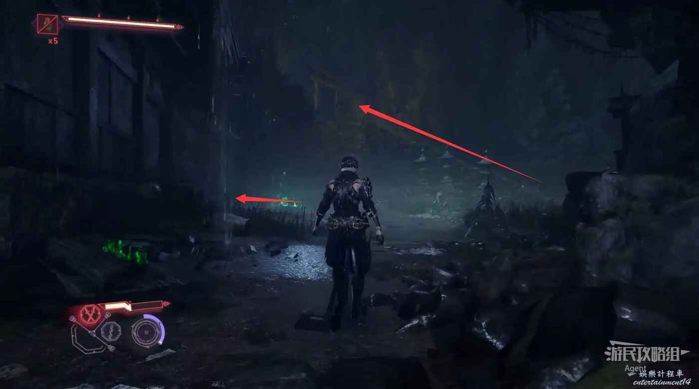 前方院子有敵人先不管,等下探索完右邊岔路自然會到那裡。