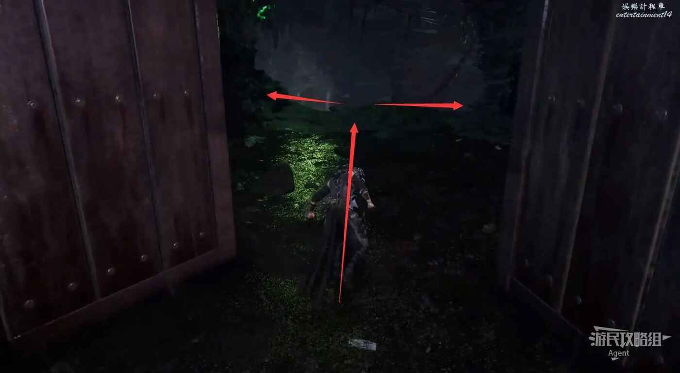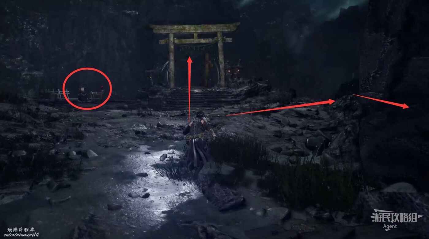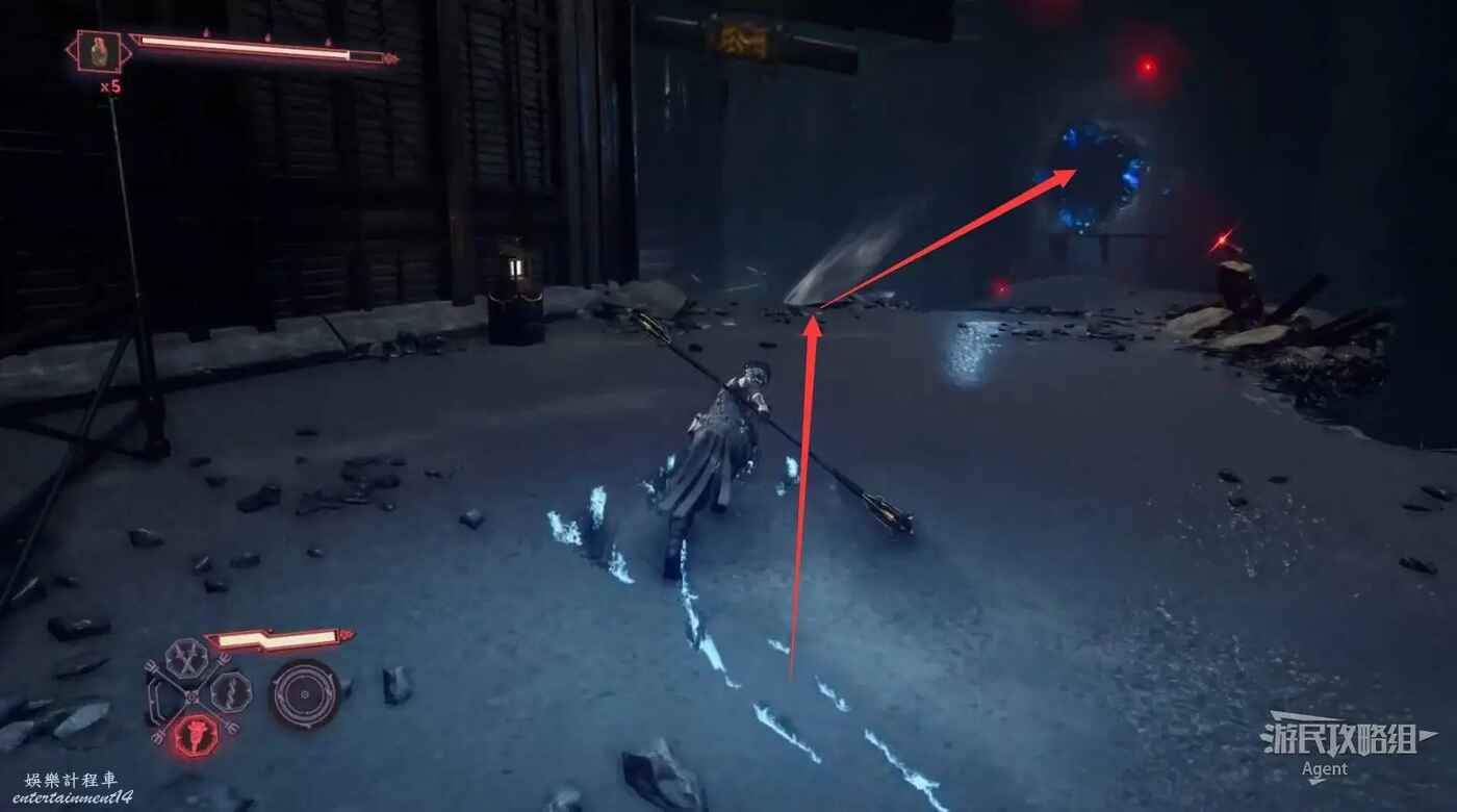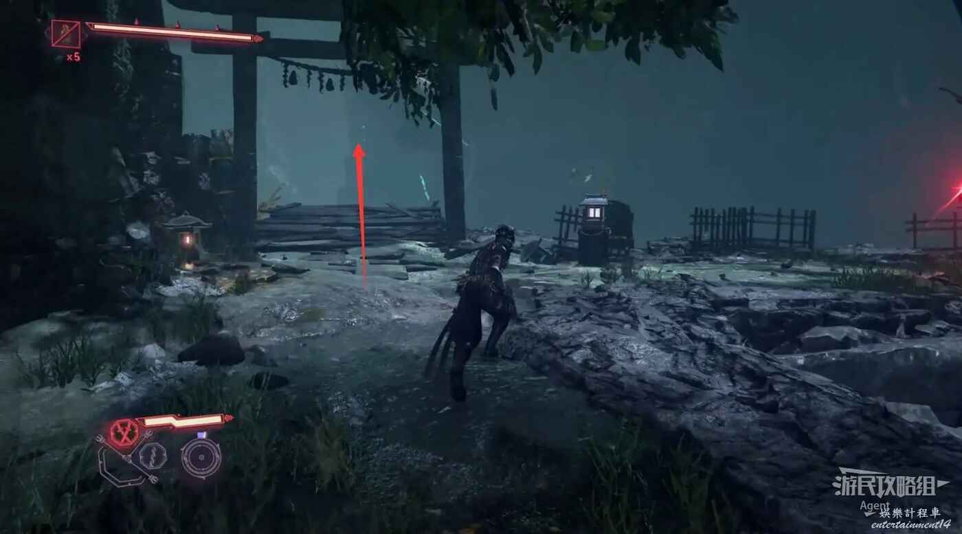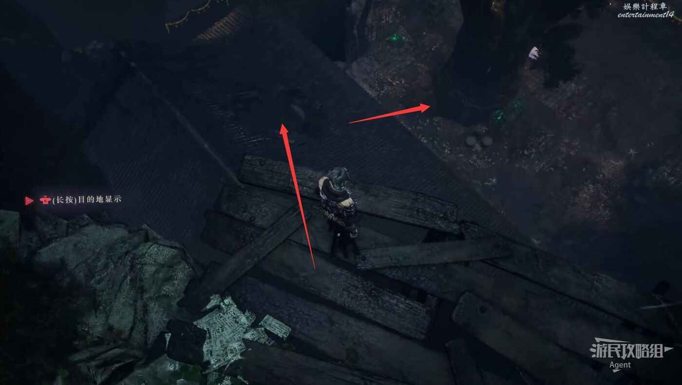 前方院子有敵人先不管,等下探索完右邊岔路自然會到那裡。