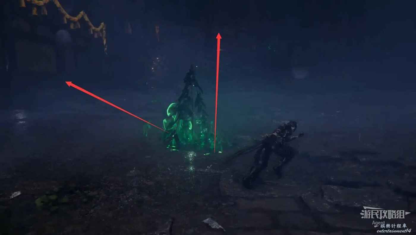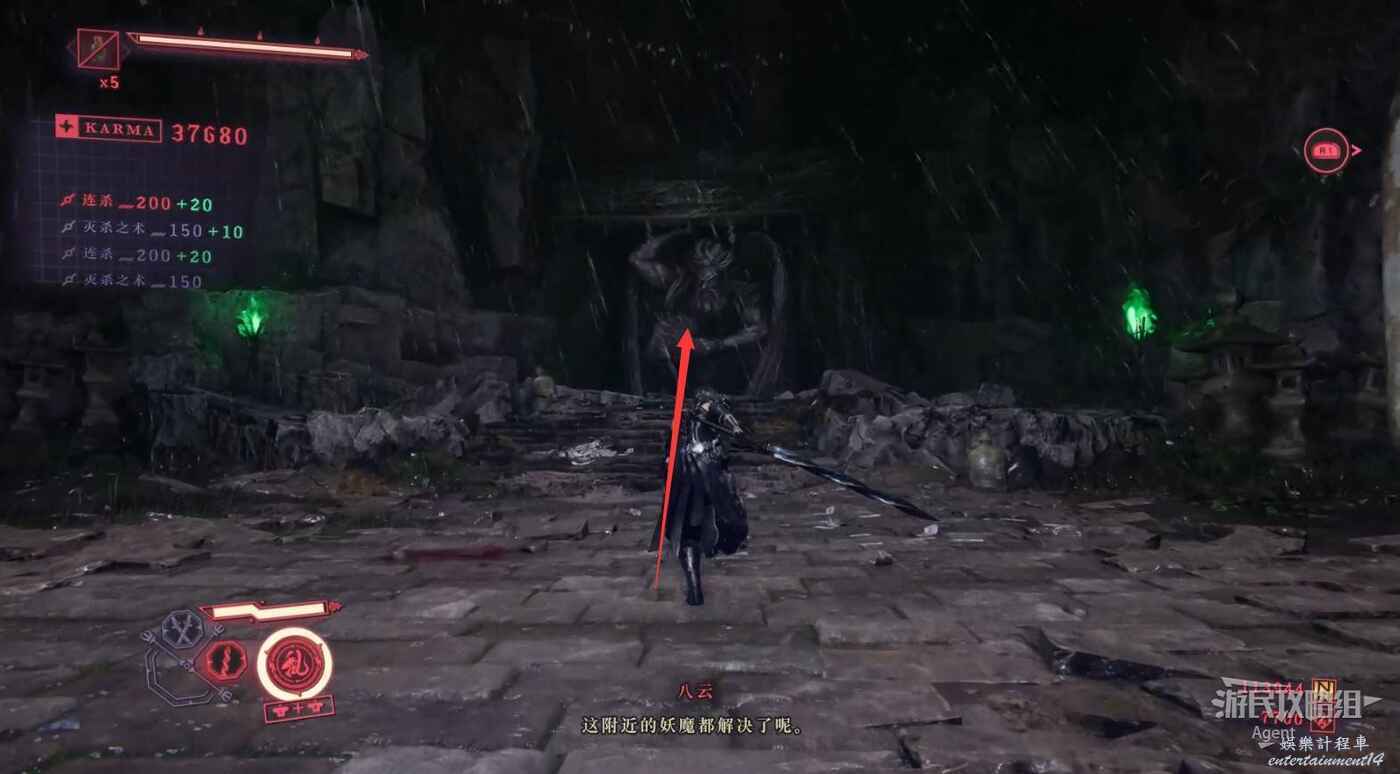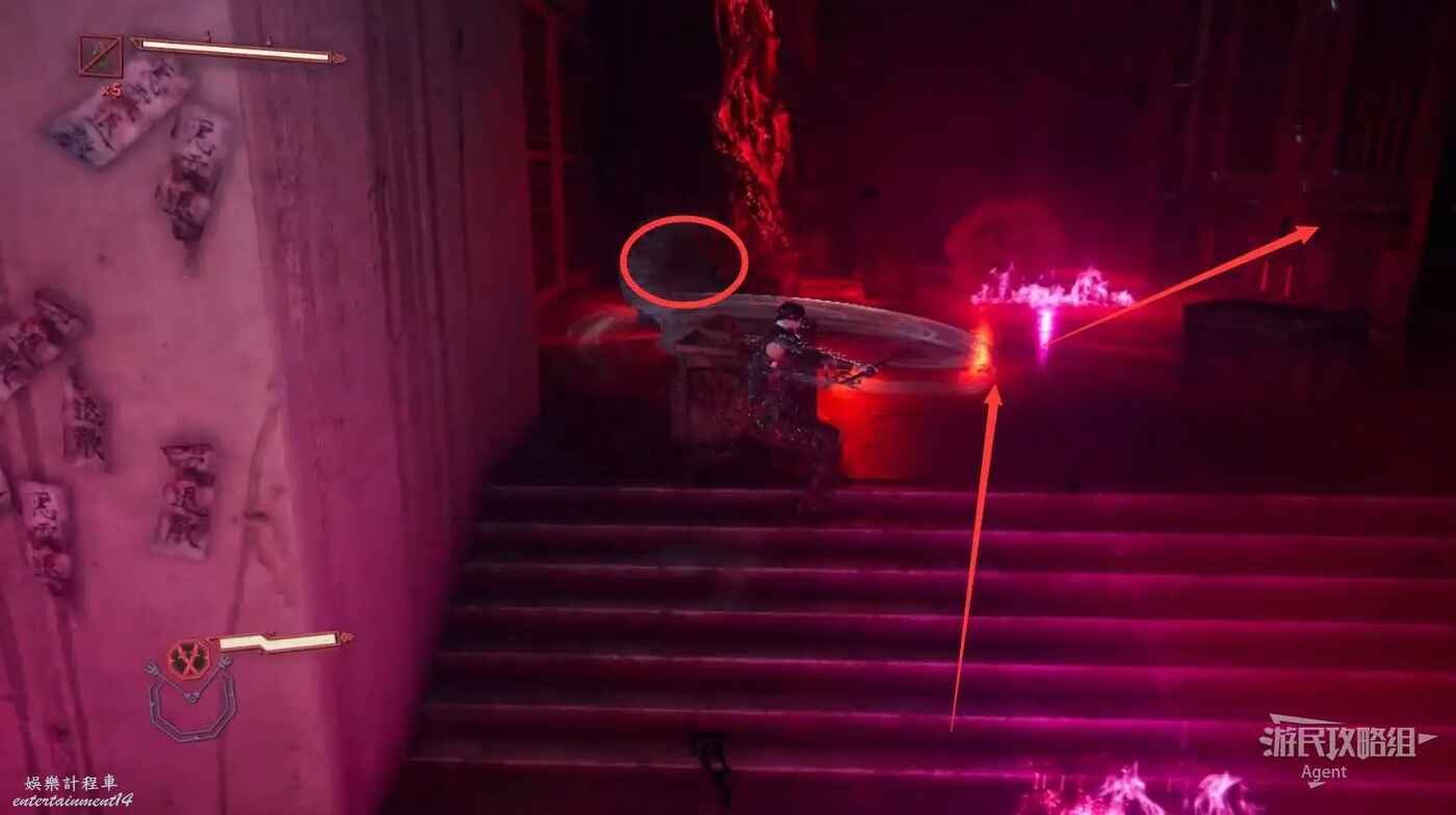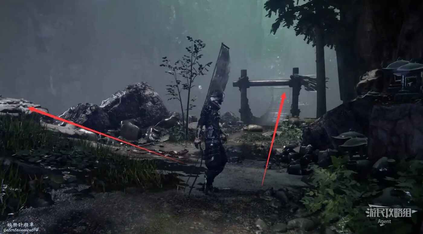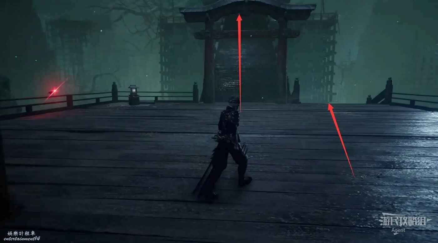 前方院子有敵人先不管,等下探索完右邊岔路自然會到那裡。