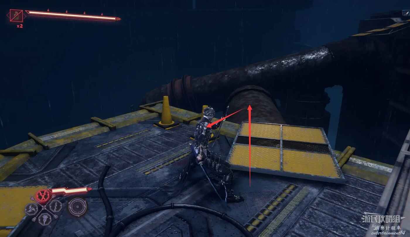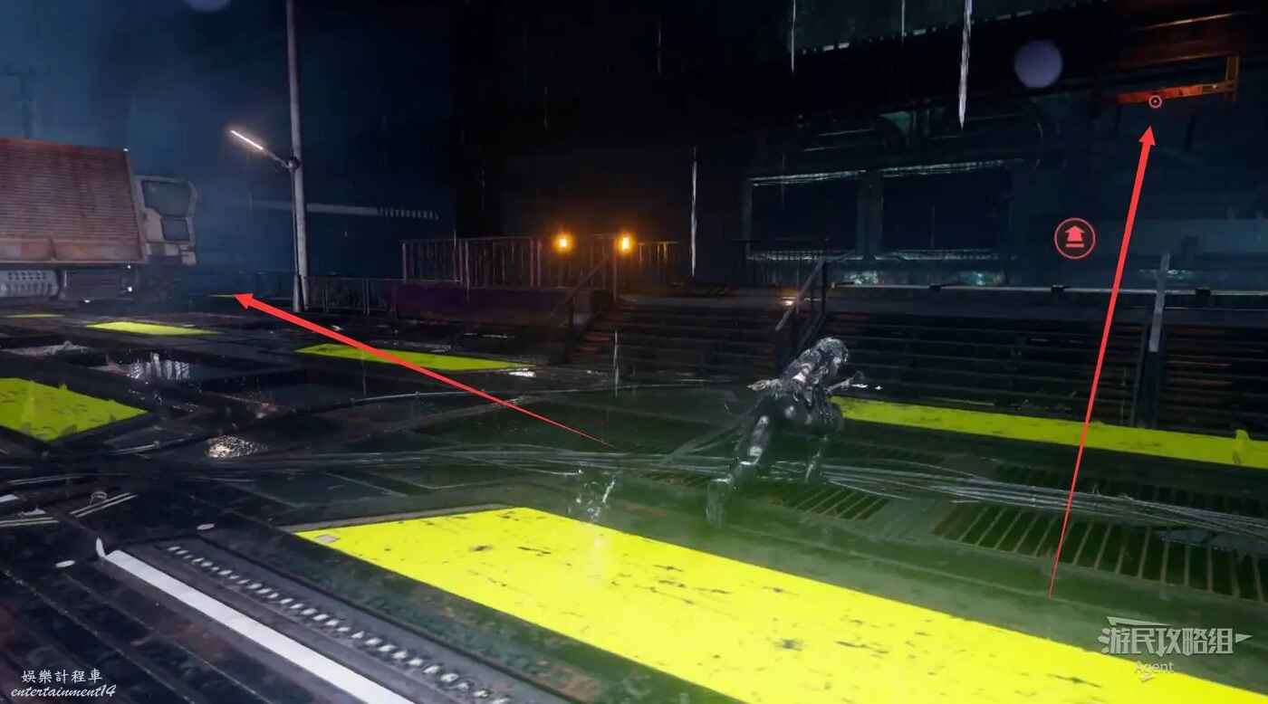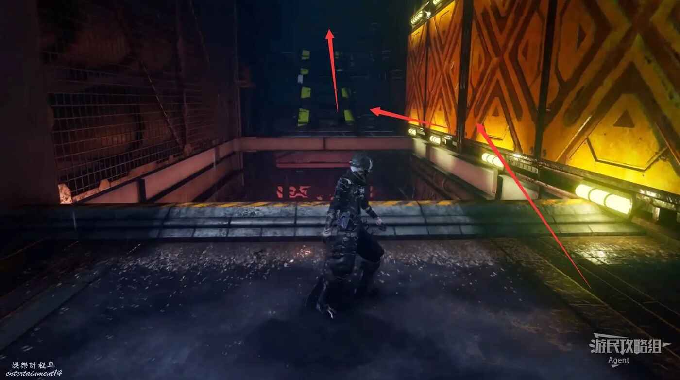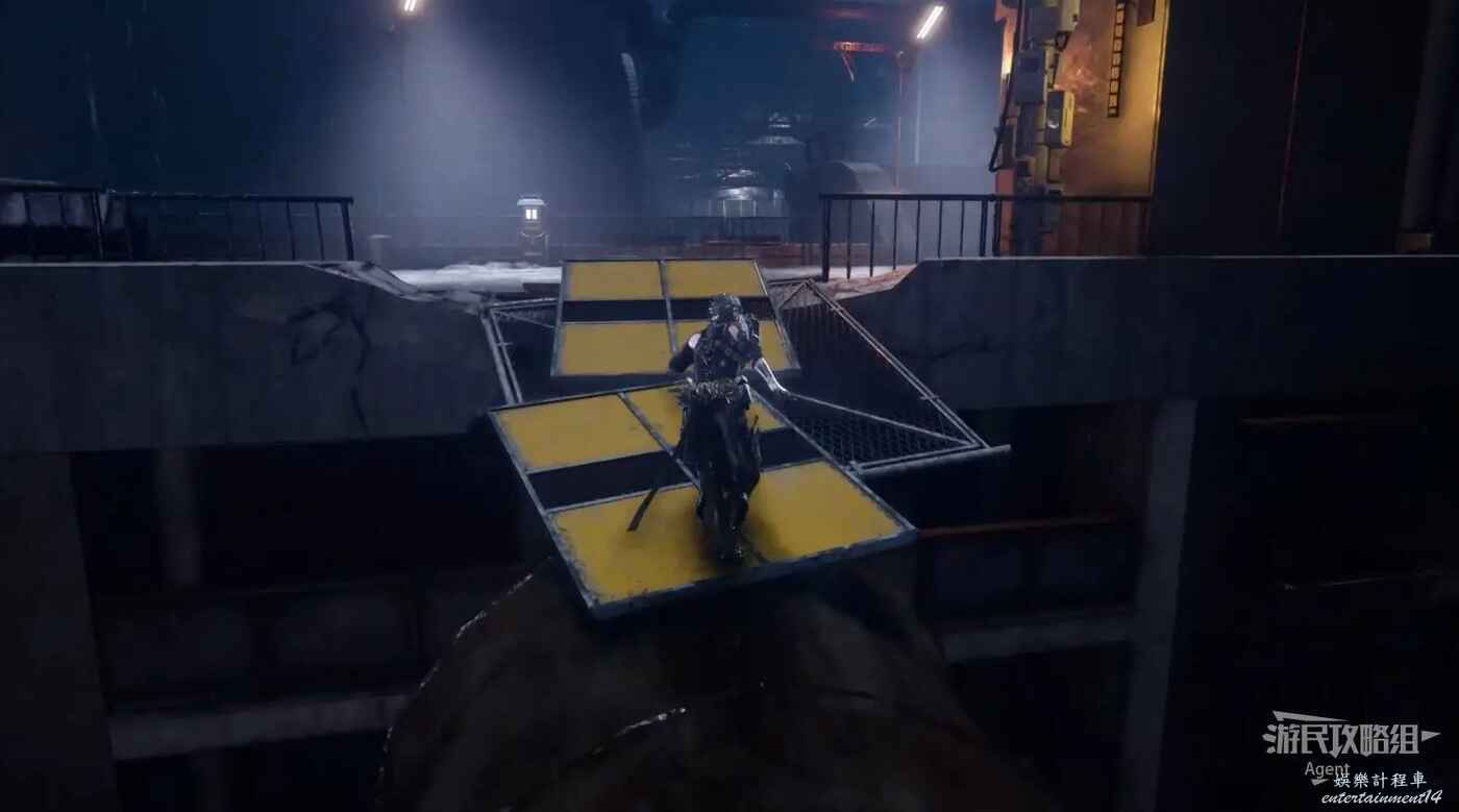 橋塌後滑過軌道,來到終端接新任務,然後跳上豎井。
