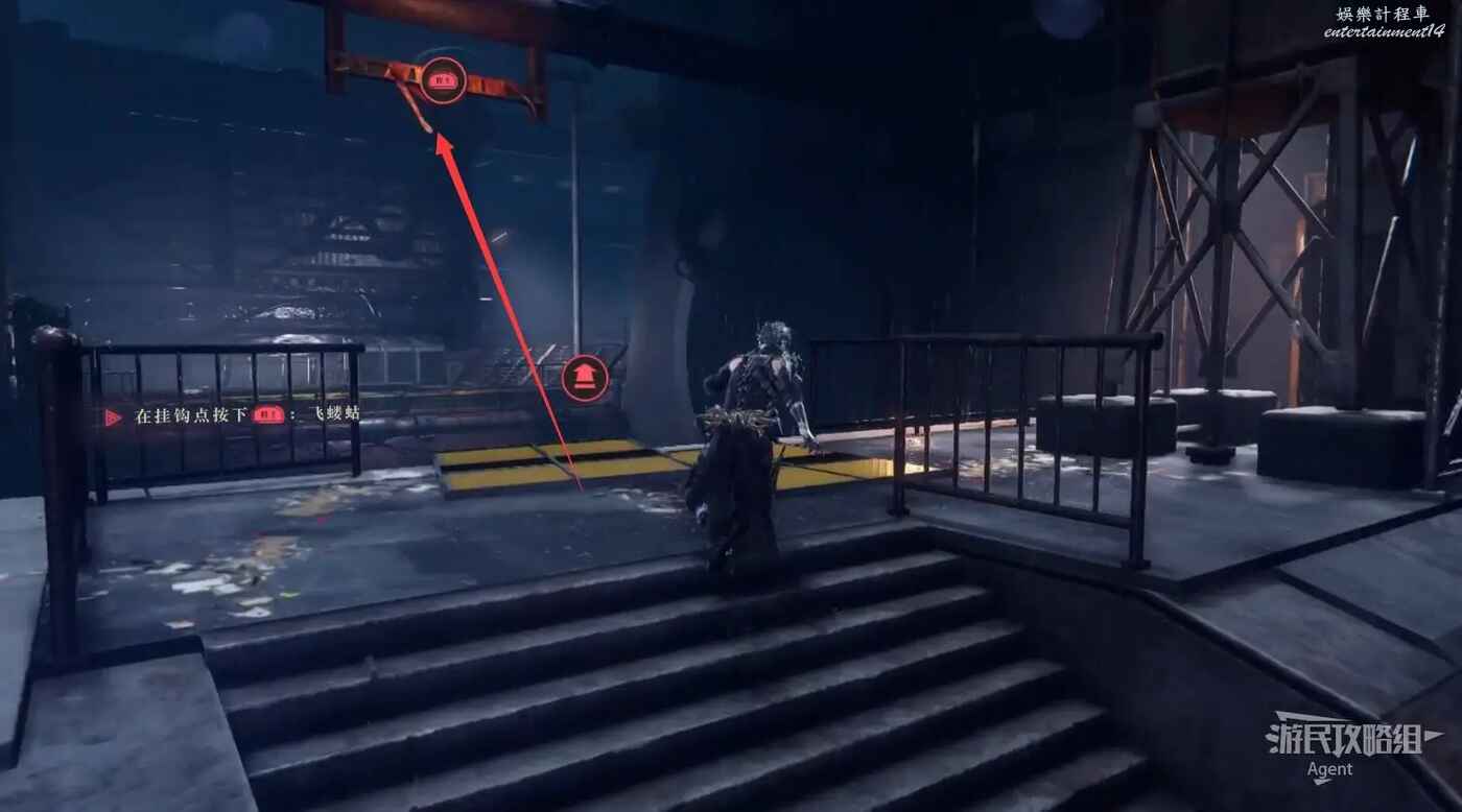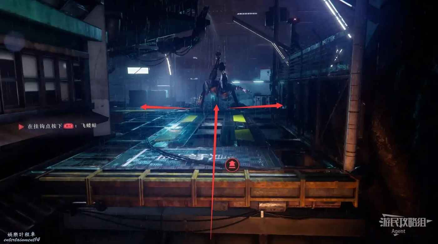 用抓鉤前進,乘電梯上來見到終端和烏鴉。