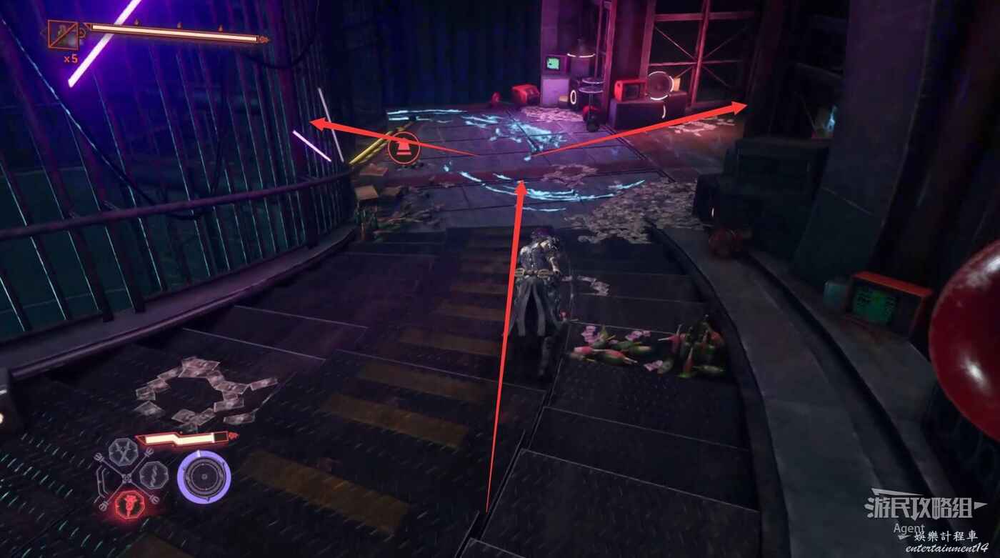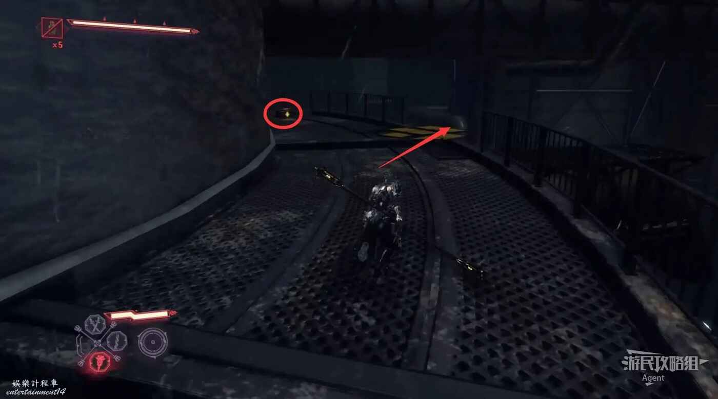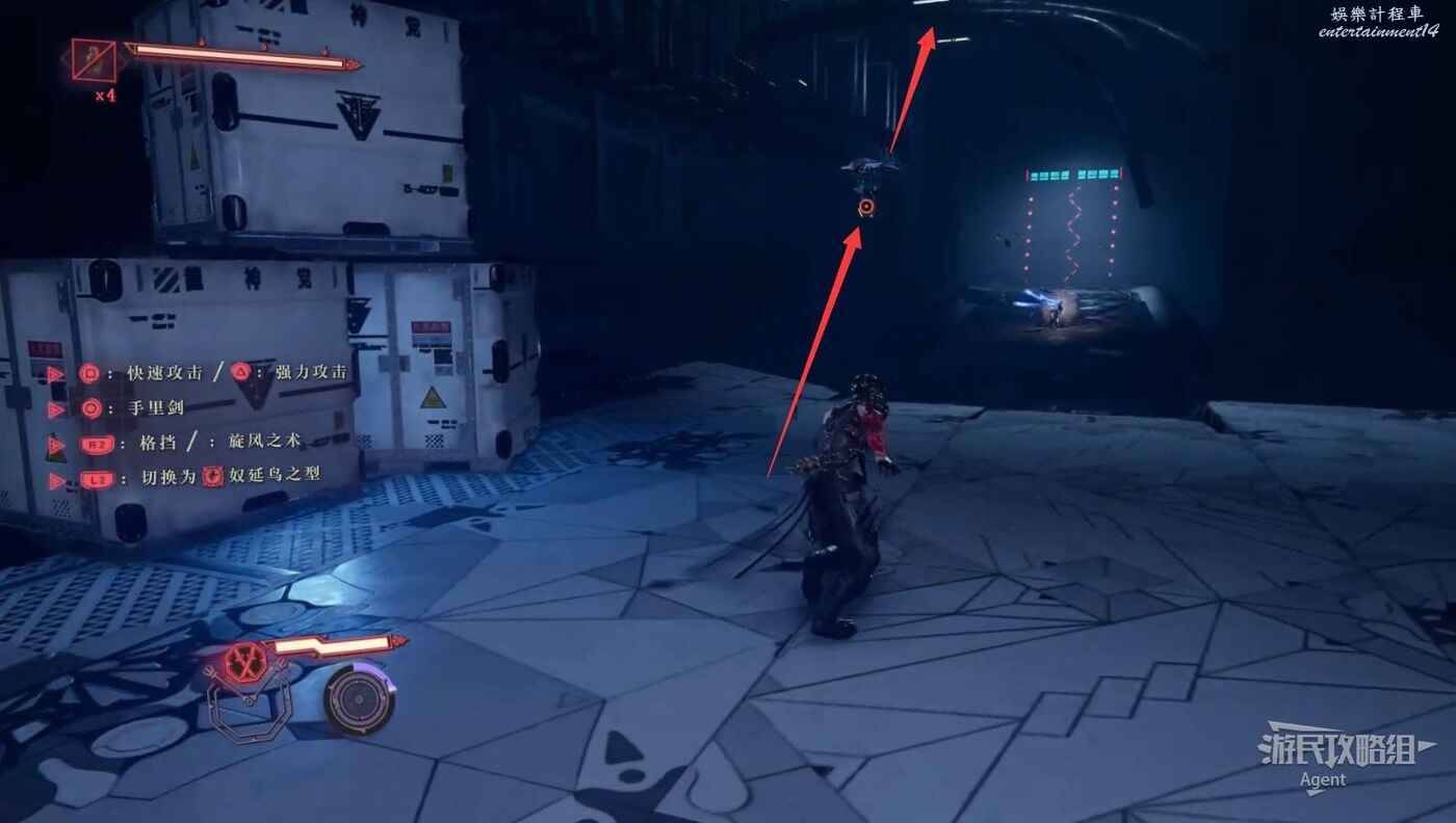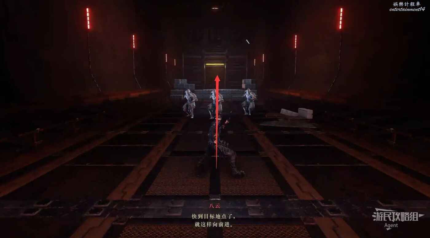 經過終端,跳上豎井後,注意先走後面的小門,滑過軌道後消滅敵人,完成任務“滅殺一眾龍神党護衛兵”。