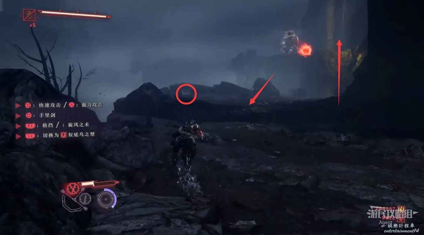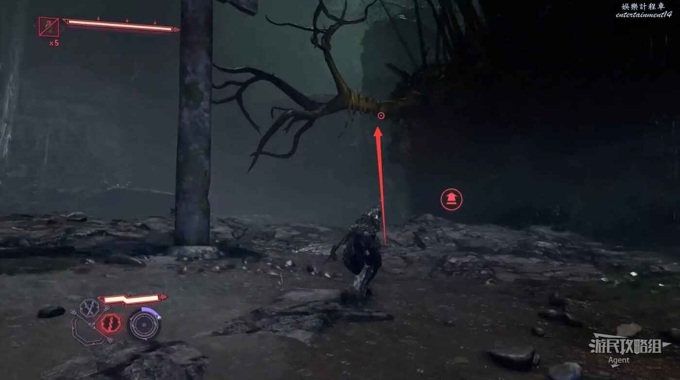繼續隨風滑翔,落地後,先去右邊用抓鉤抓樹枝過去有個【煉獄】。