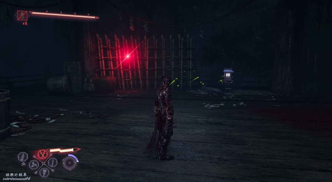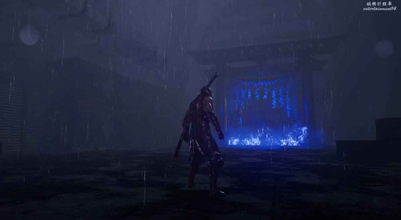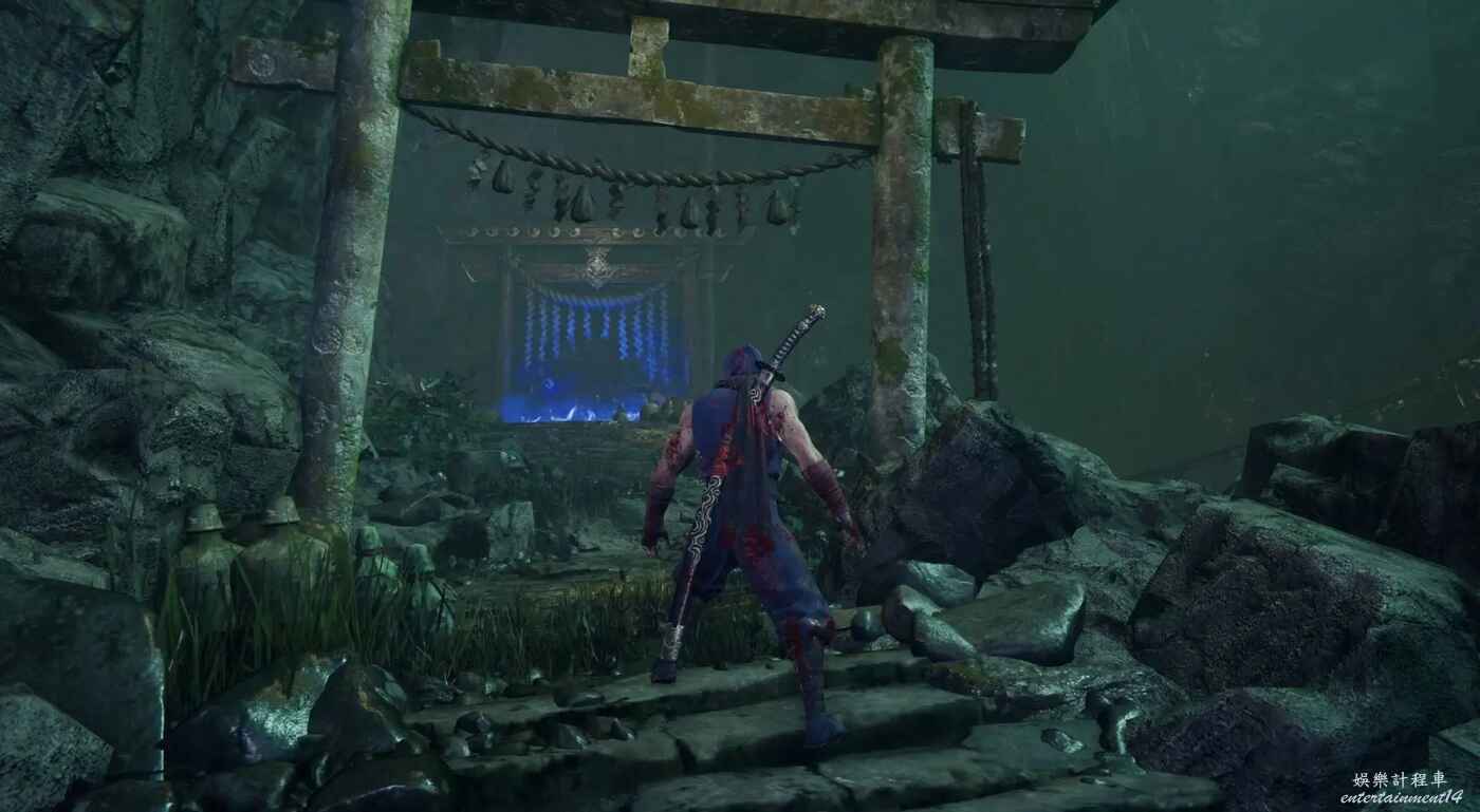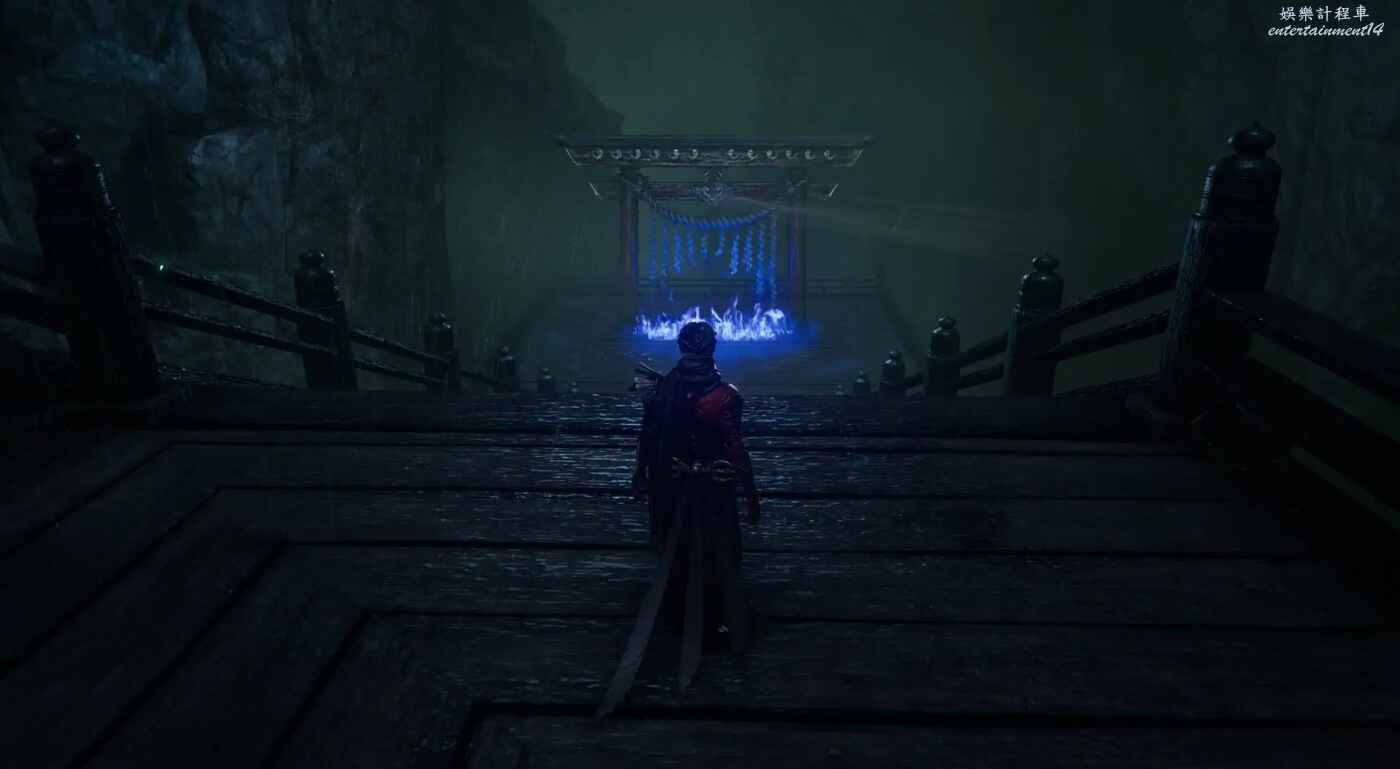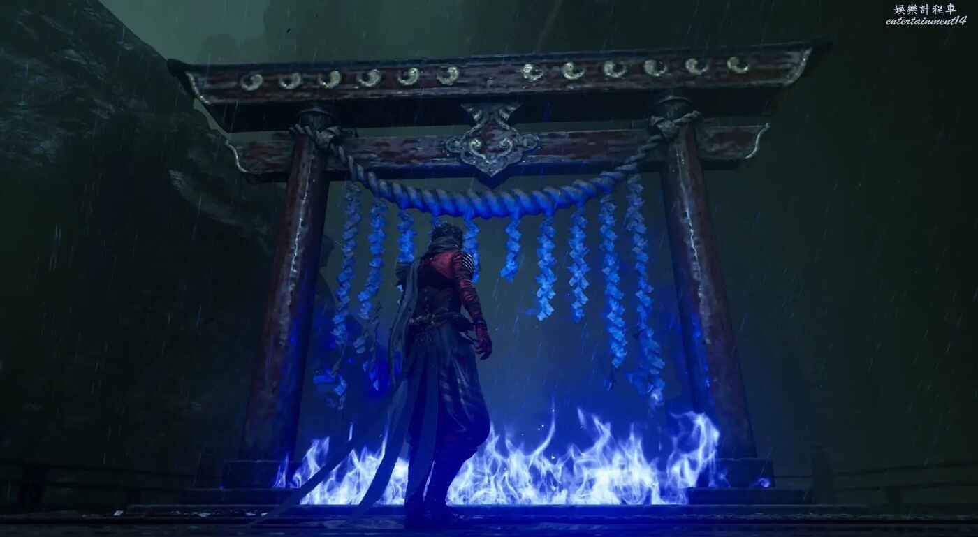 獲得鴉忍具【水馬】後來到迪斯可舞廳,清完敵人後走主通道右側大門,在兩個牆壁連續左右橫跳來到上層,駕駛水馬穿越水道即可到達此煉獄門位置。