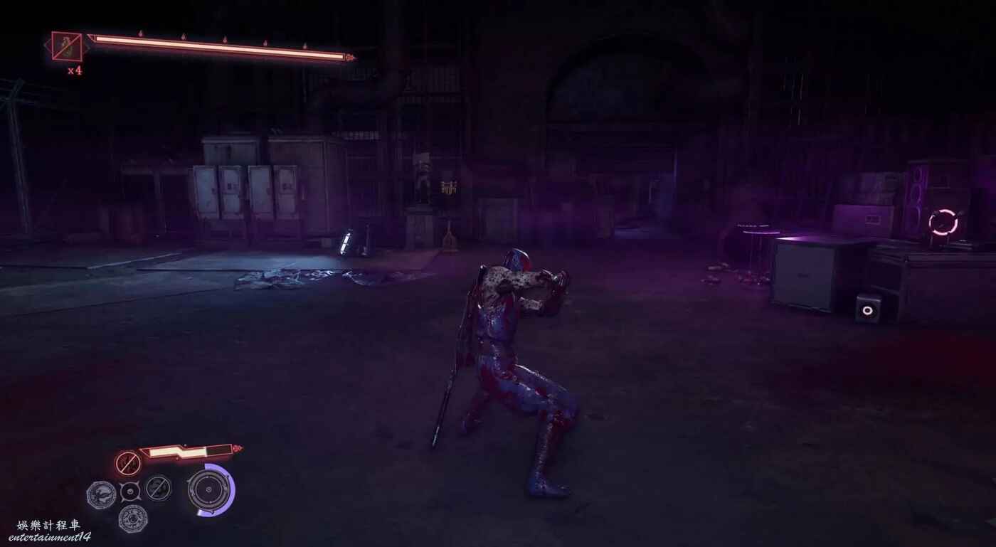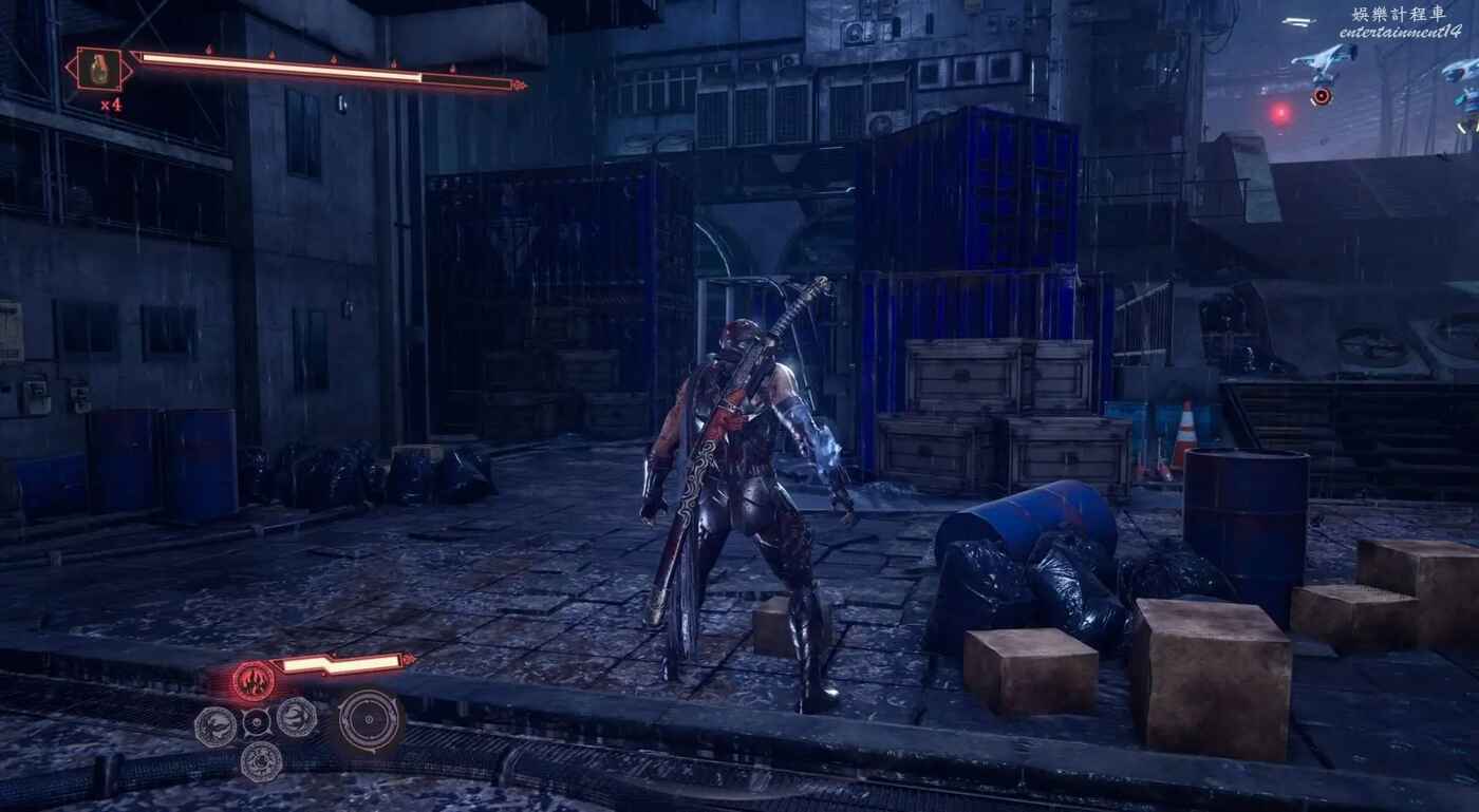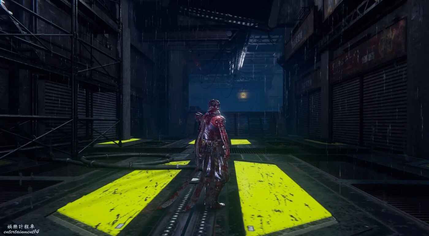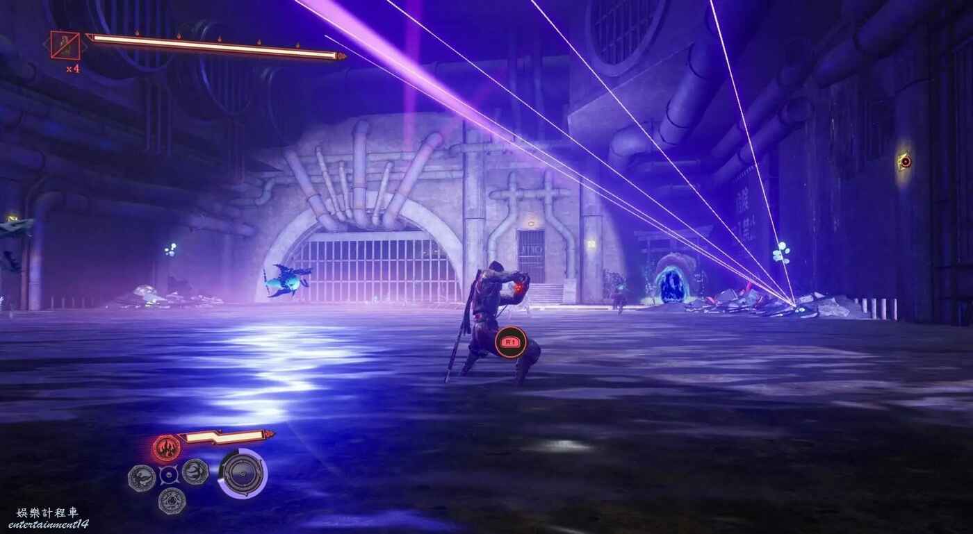 完成第一段滑軌場景後,利用抓鉤到達上層建築。擊碎下圖所示的藍色箱子,後方會出現新的滑軌通道,穿過這段滑軌上樓梯即可看到煉獄門。
