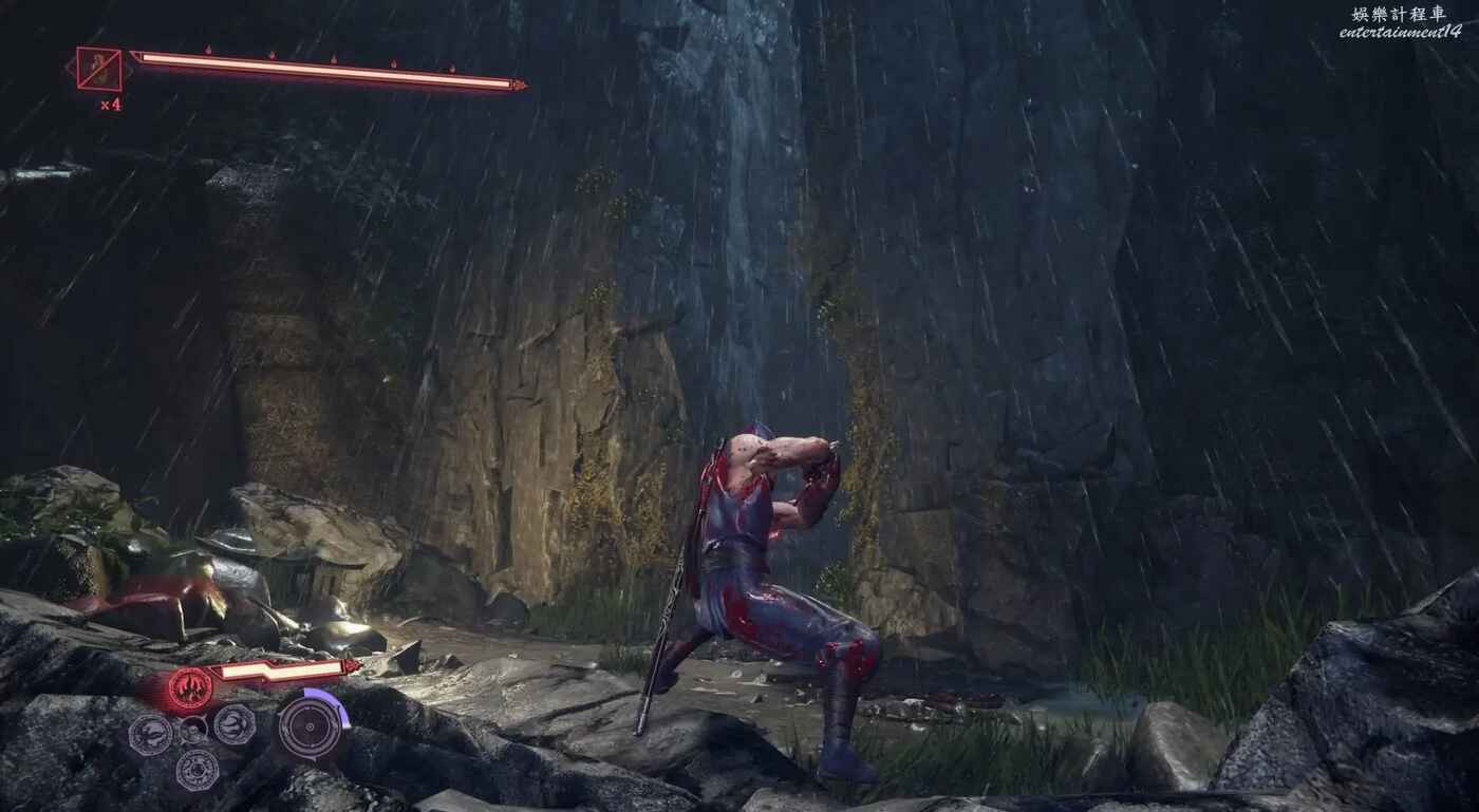在獲得鴉忍具【搖蚊】後的攀岩場景中,穿過需要蹬牆跑+鉤索的區域後,岩壁旁會刷新兩名敵人。此時不要往上走,貼著右側岩壁走到頭即可看到。