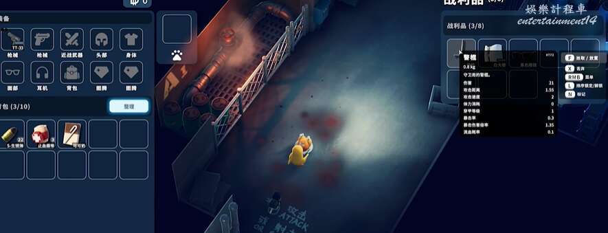 逃離鴨科夫 (Escape from Duckov) 典獄長擊殺方法 21 10 月 2025-10-21 廣告 來源:互聯網 1、玩家開局後先向左上走,到旁邊房間收集武器。 2、然後往右上角走,用手槍將堵路的敵人擊殺。 3、擊殺後摸屍可以獲得近戰武器警棍,然後玩家就可以回去了。 4、往初始房間右下角走,可以看到有個門關起來的房間。 5、玩家打開門後用手槍打一下典獄長,將其勾引過來。然後玩家退出房間,隔著門用警棍攻擊過來的典獄長即可將其擊殺。