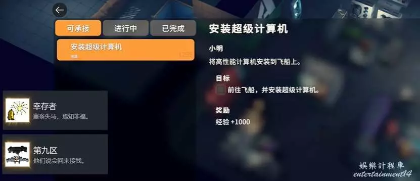 前往風暴區左側,使用移動硬碟下載飛船圖紙,並完成後續任務為飛船安裝空間擴展組件。