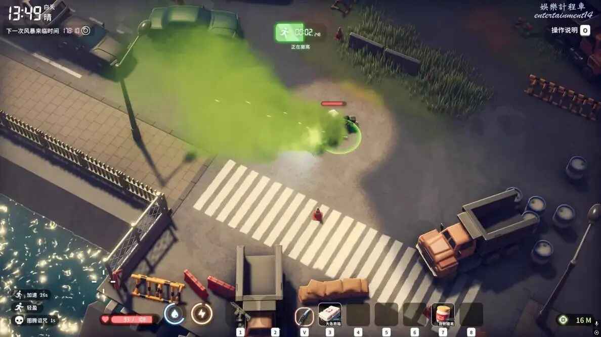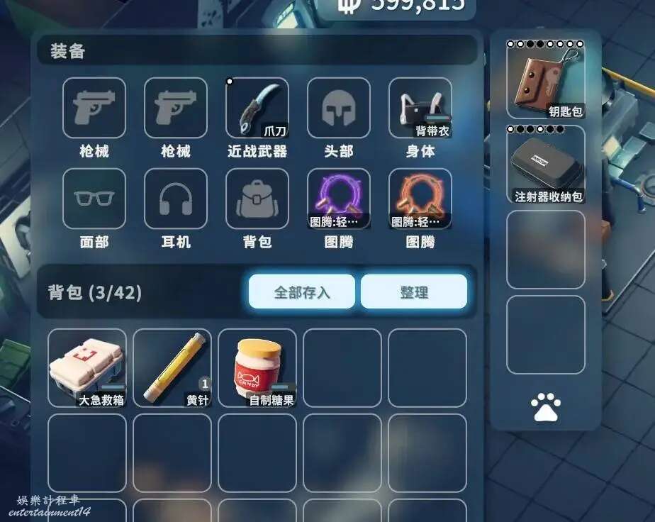 首先讓我們穿上背帶褲獲得+0.5移速,天賦選擇狂戰士,武器任意選擇一把加速近戰(沒有爪刀也行,反正有上限會溢出)然後圖騰帶上輕盈II和III,獲得+10%和+15%的常駐加成,同時獲得一個三秒扣一次血的被動,但是別著急,只要你入圖出圖夠快,這點掉血完全沒影響,上面這些就是常駐移速了,如果是帶的爪刀跑步速度這時候已經到了10.4,然後我們再看加速食藥,共有三種:120S的25%加速花費629,吃一顆花費47持續90S戰鬥會消失的高興buff糖,還有一個受傷加速的熱血針看起來正好能跟上面的輕盈III圖騰搭配實則不管紮不紮移速都是13.7,不知道是到上限了還是有bug。