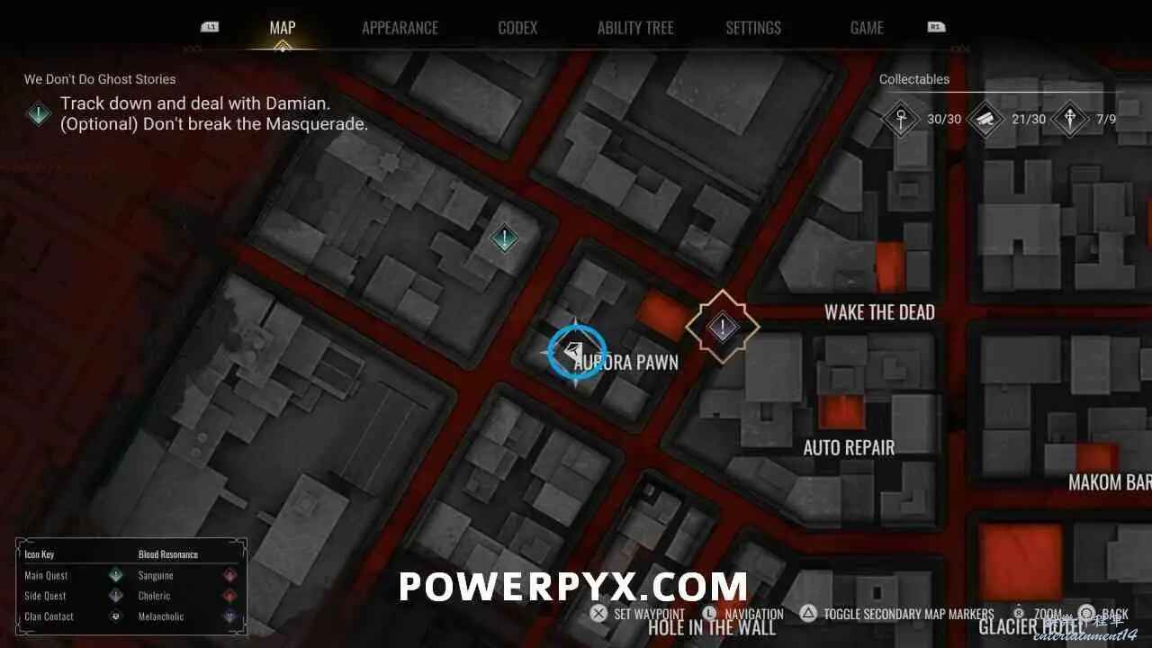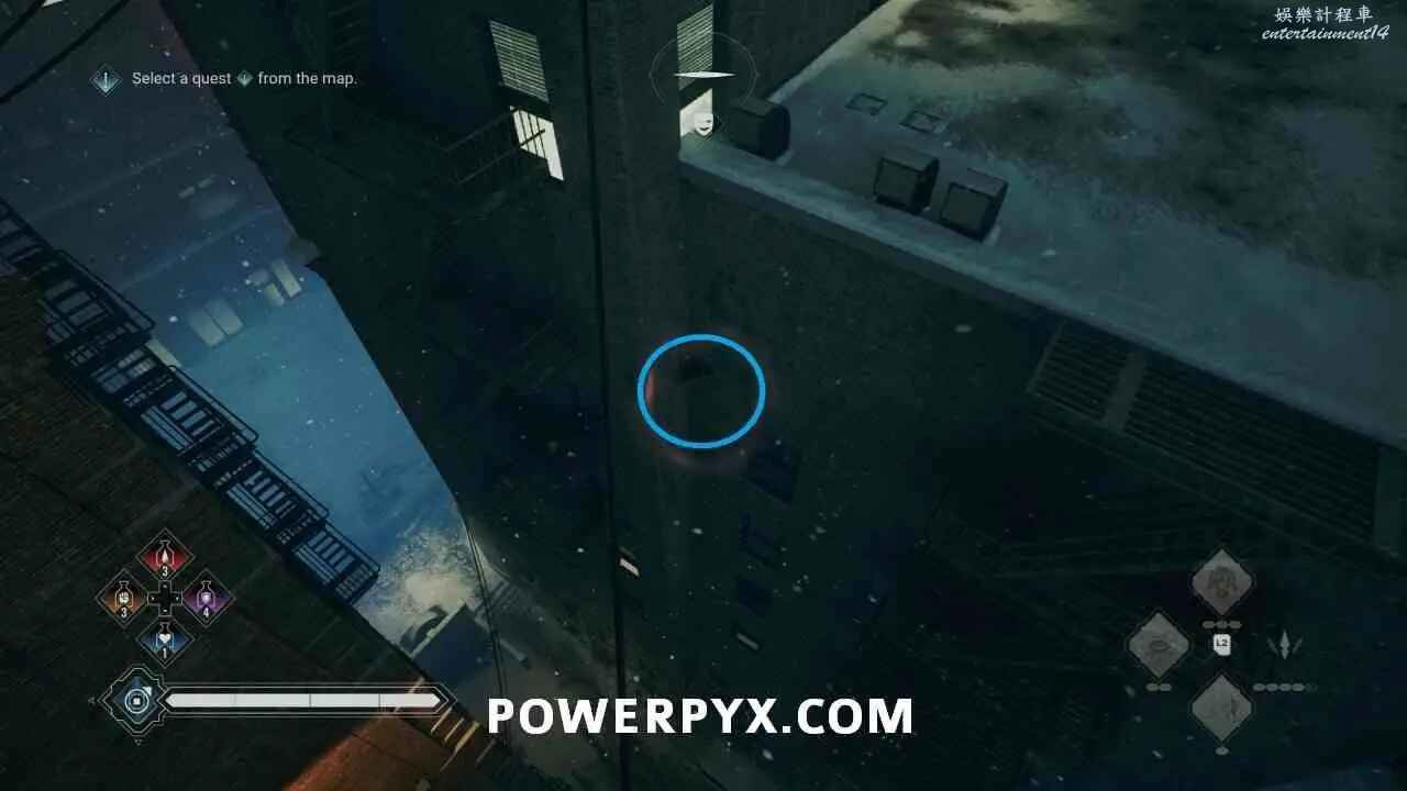 奧羅拉典當行西南邊小巷內,西邊角落建築的頂部附近。