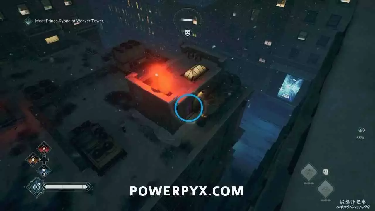 韋弗爾大廈入口上方走廊處,可以從西邊建築跳過去。