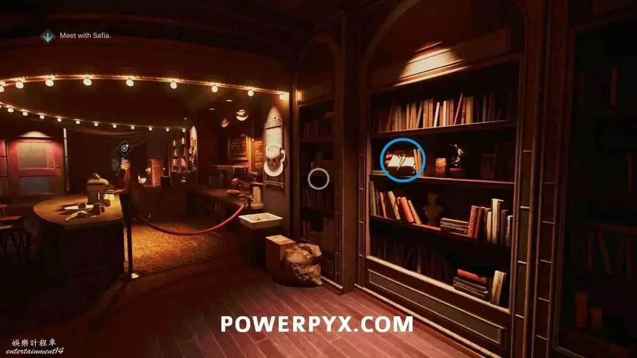 在喚醒亡者咖啡館內,位於索恩夫人右側的書架上。