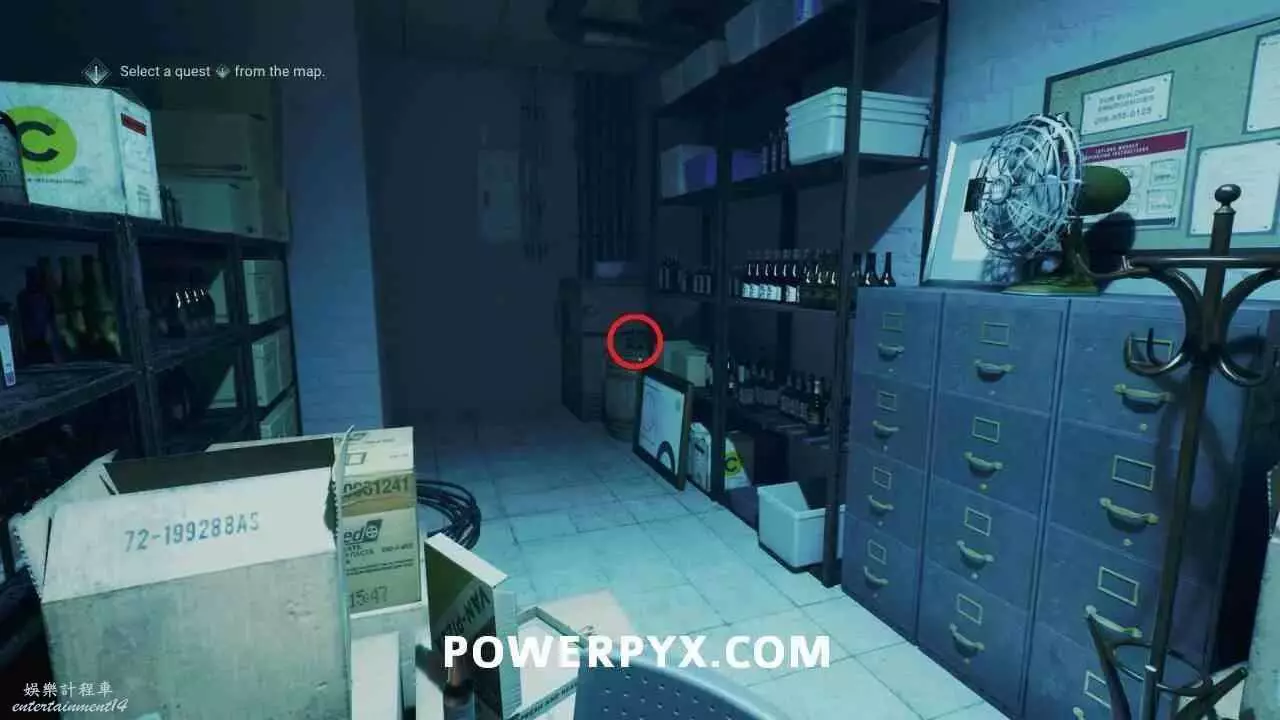 在馬科姆酒吧內,前往後方房間,插在角落架子左側的桶頂。