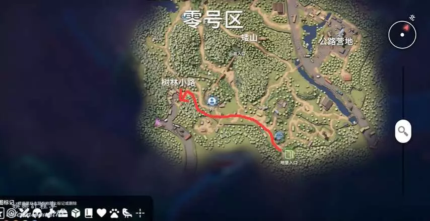 玩家從零號區從地堡入口出發,跟著下圖所示的位置往前走。