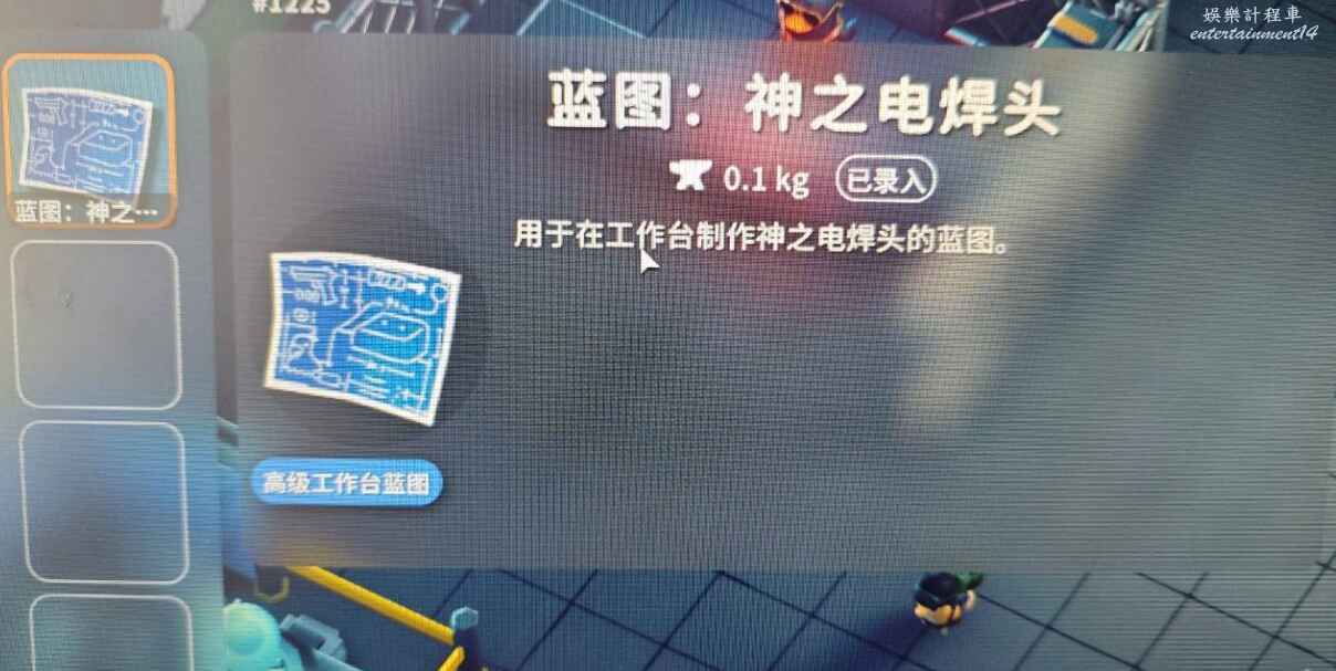神之電焊頭藍圖。雖然其他頭盔都可以製造,但這個電焊頭藍圖卻可以作為材料。