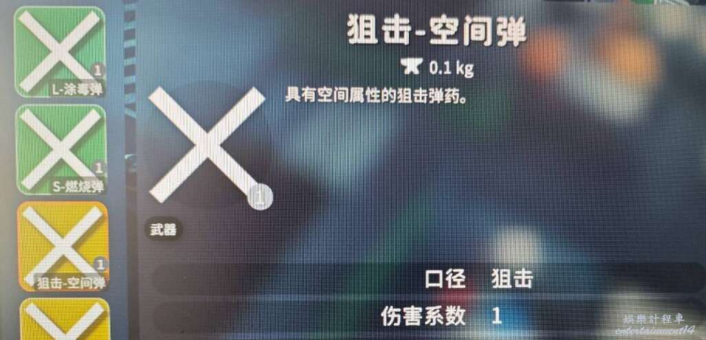 設定塗毒彈、燃燒彈、空間彈、電擊彈,每種口徑都有這四種類型。