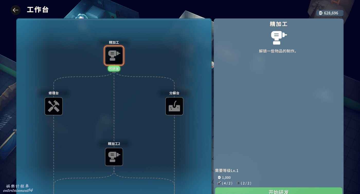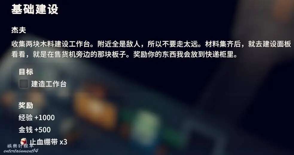 在地堡內建造一個工作台,建造工作台需要兩個木料,木料在零號區很容易獲得,多開一些箱子就能找到。