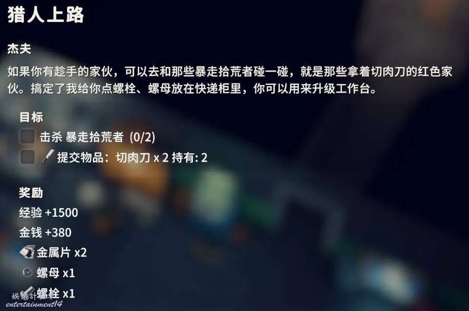 這個任務主要難點是擊殺兩個暴走拾荒者,擊殺它們大幾率能夠在戰利品中搜索到切肉刀,在零號區下圖位置會固定刷新兩隻暴走拾荒者,注意它們移速很快攻擊高,但是是近戰單位,找到用槍就能輕鬆擊殺。