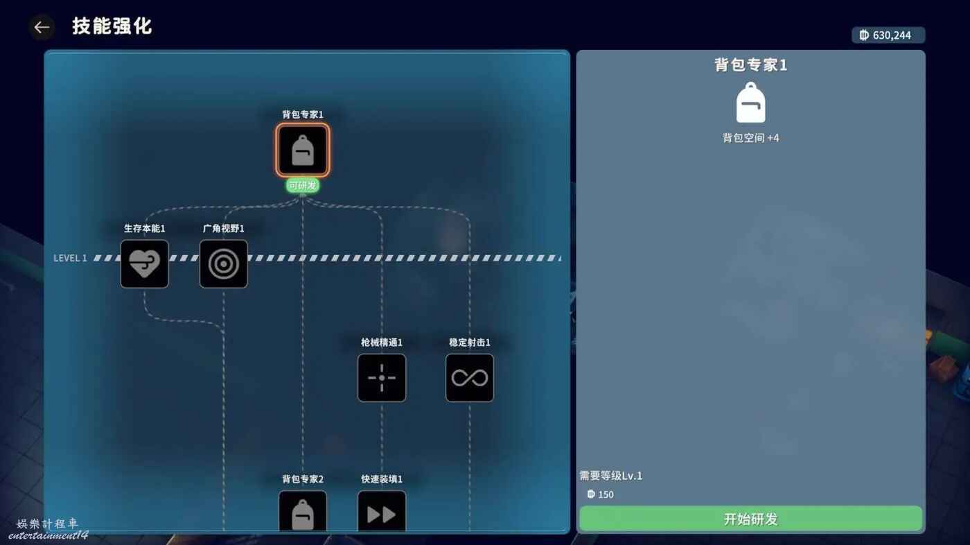 需要玩家解鎖背包專家1這個技能,需要在地堡下圖設備解鎖。