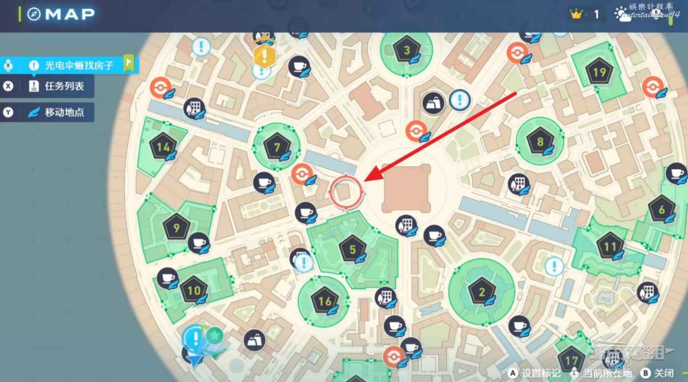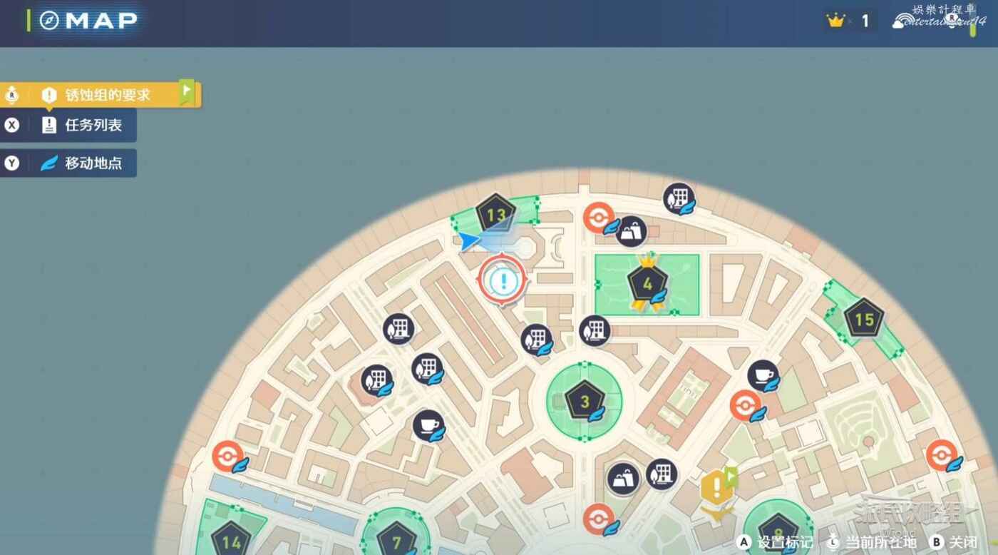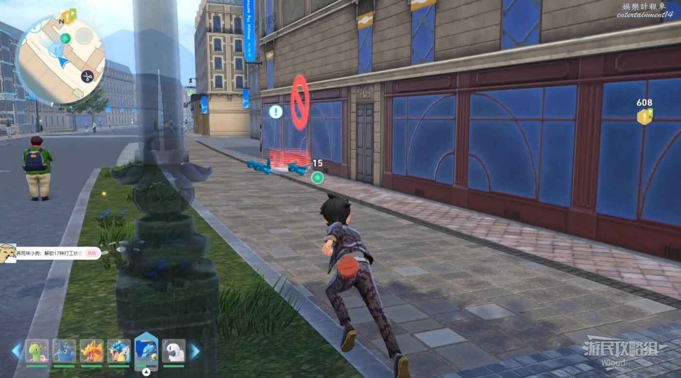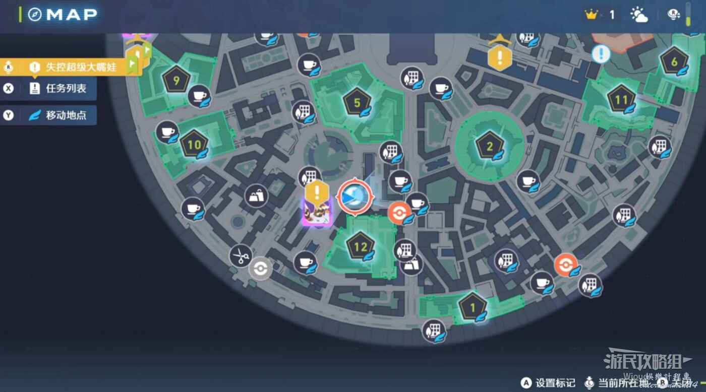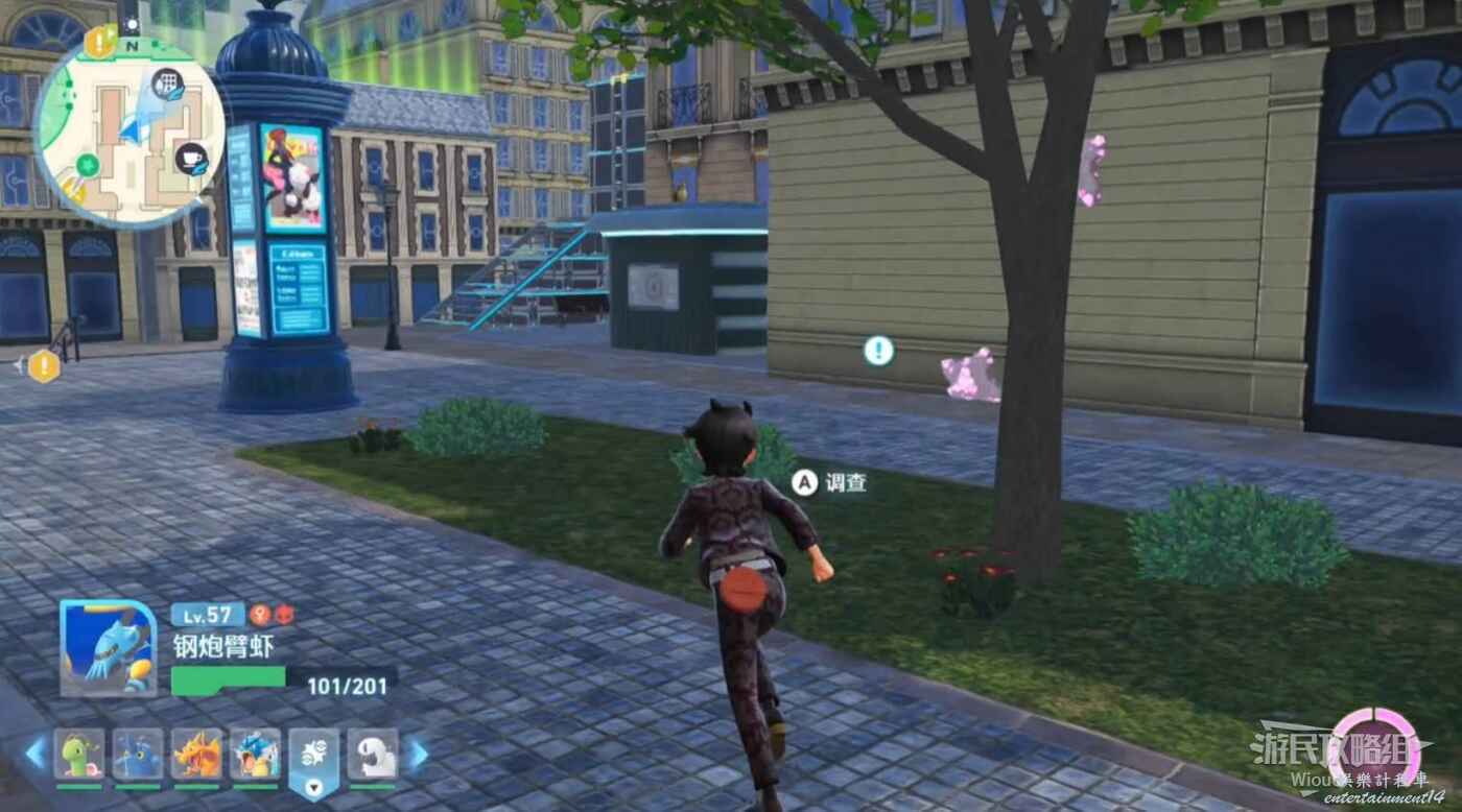 任務接取位置如下圖所示,到街道旁和發佈人對話,得知需要用招式【污泥炸彈】擊打旁邊的物體。