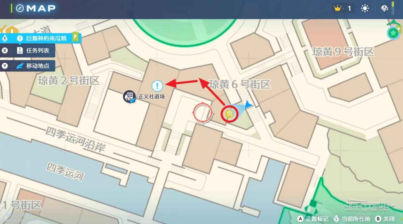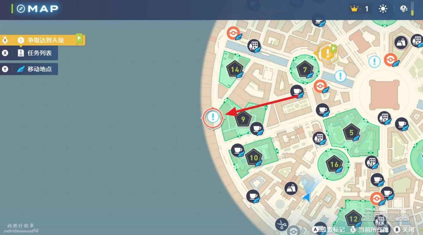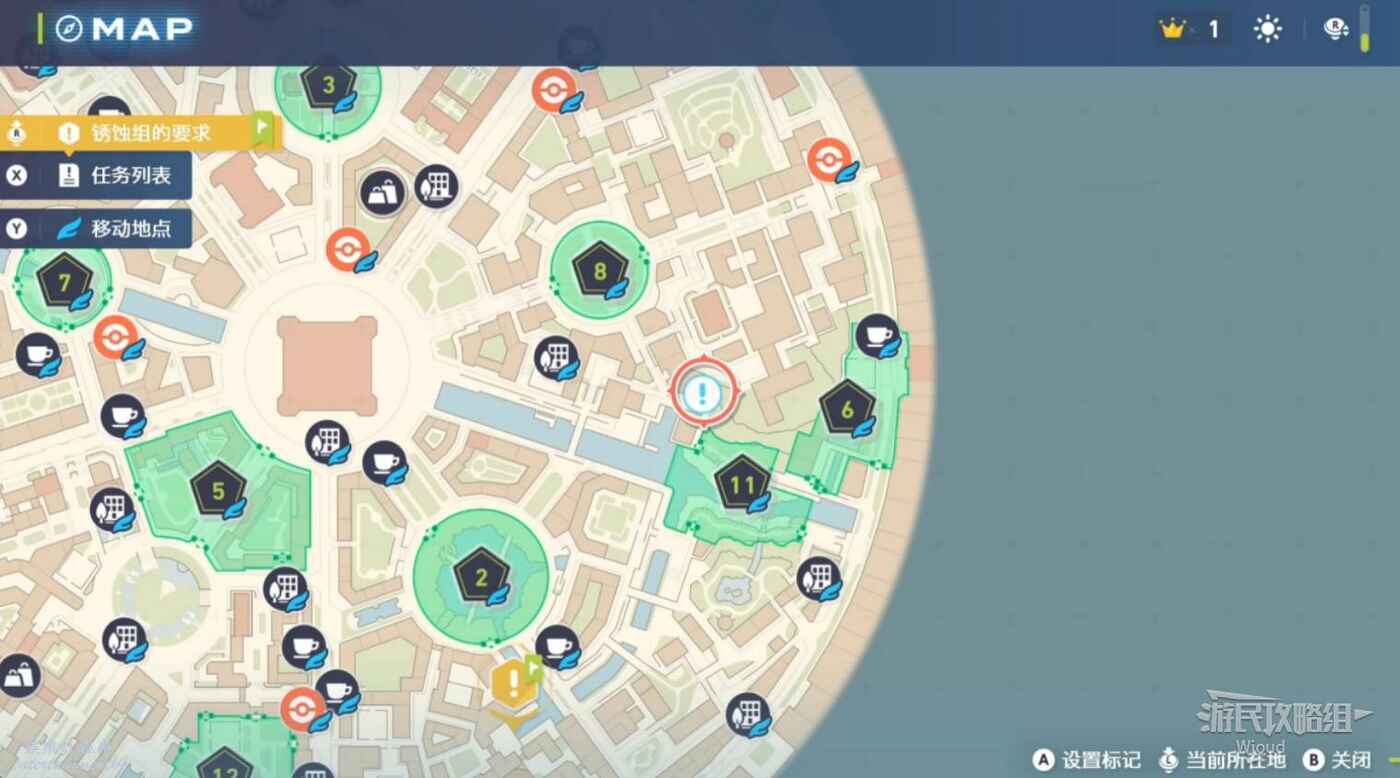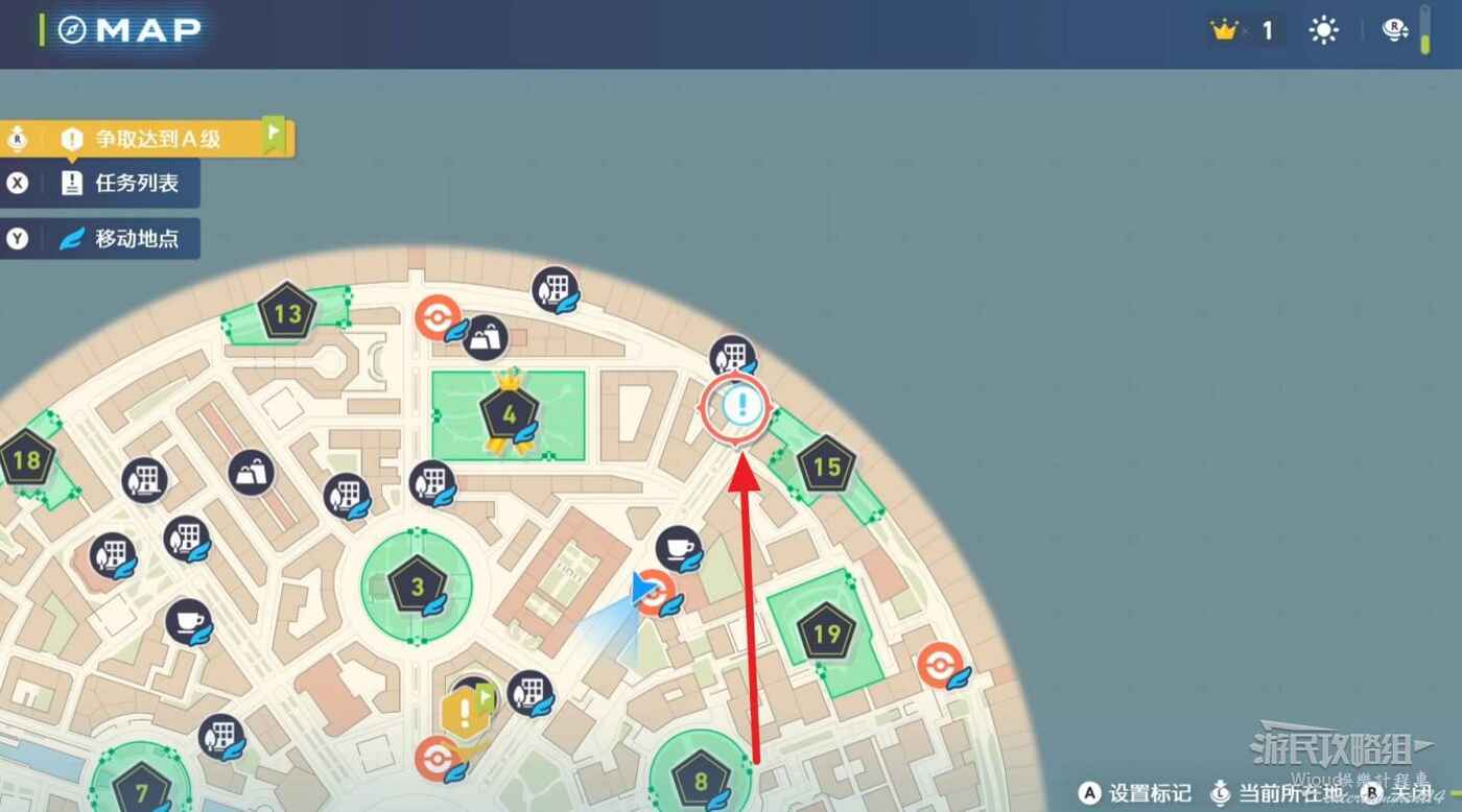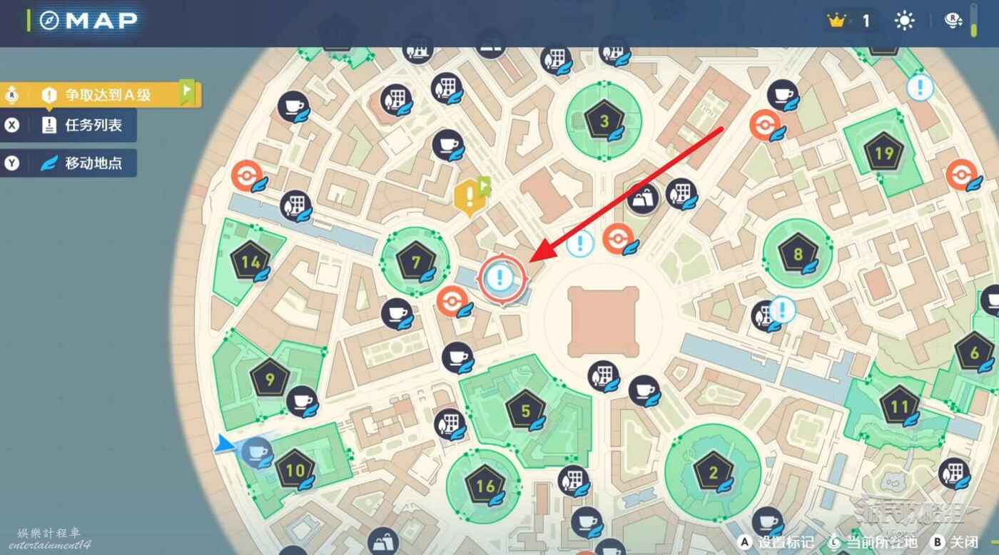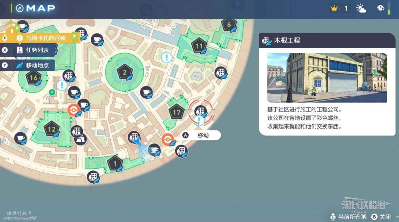任務接取位置如下圖所示,到街道旁和發佈人對話,得知需要用招式【污泥炸彈】擊打旁邊的物體。