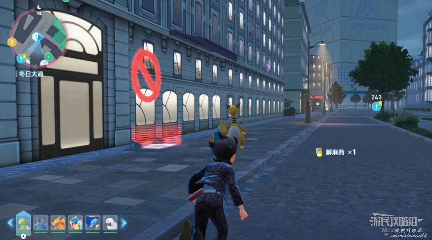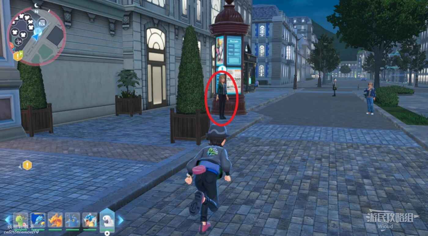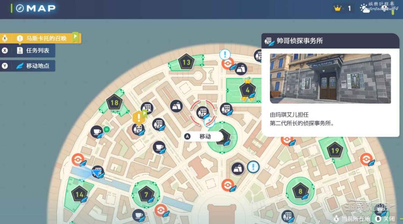 先傳送到帥哥偵探事務所觸發劇情,離開建築和瑪琪艾兒打寶可夢對戰。