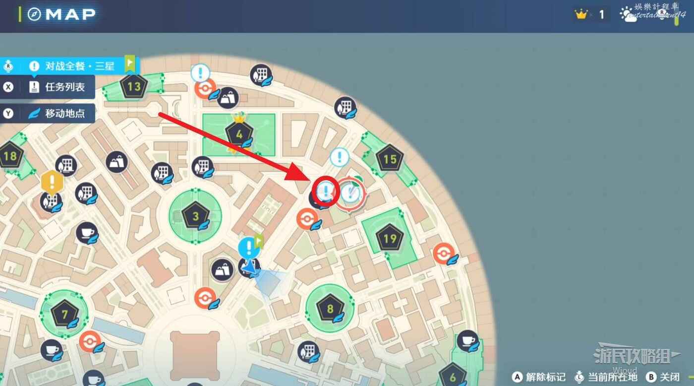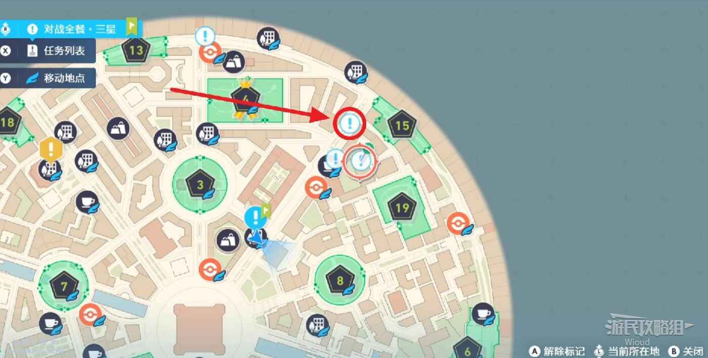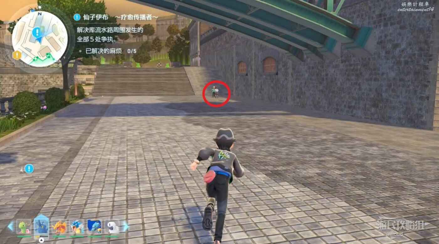 任務接取位置如下圖所示,來到目的地對戰場和NPC對話進行寶可夢對戰。