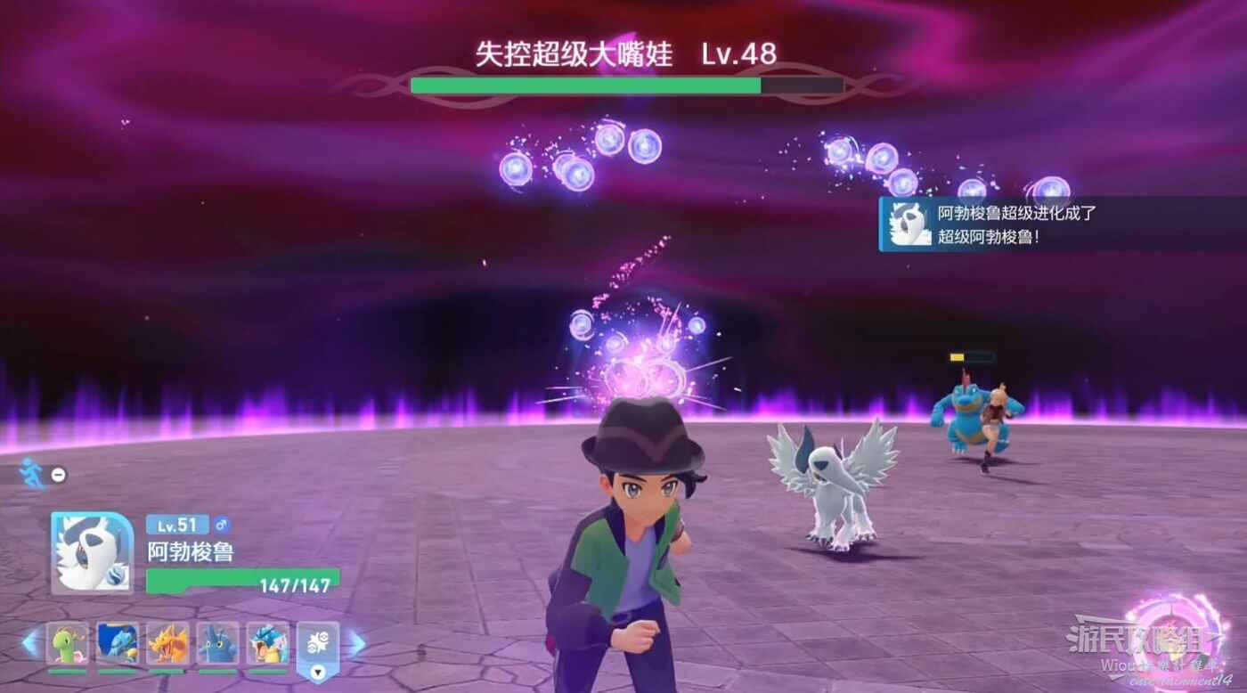 傳送到旅館Z過劇情,再次得到三個失控超級進化的寶可夢。