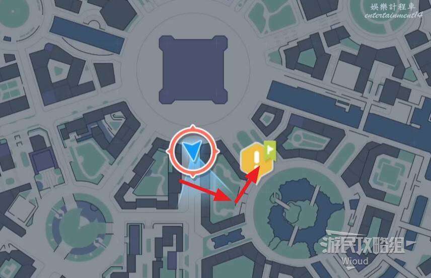 入口先往右邊走,和紅圈所示處的電閘互動,然後和旁邊的傳送點互動,移動到另一個藍圈處。