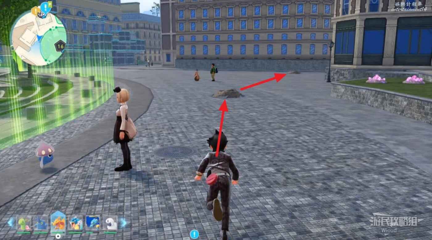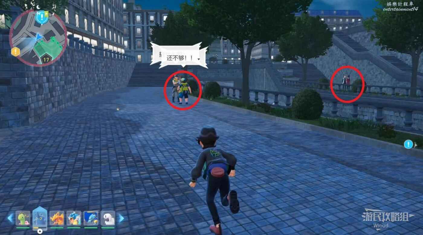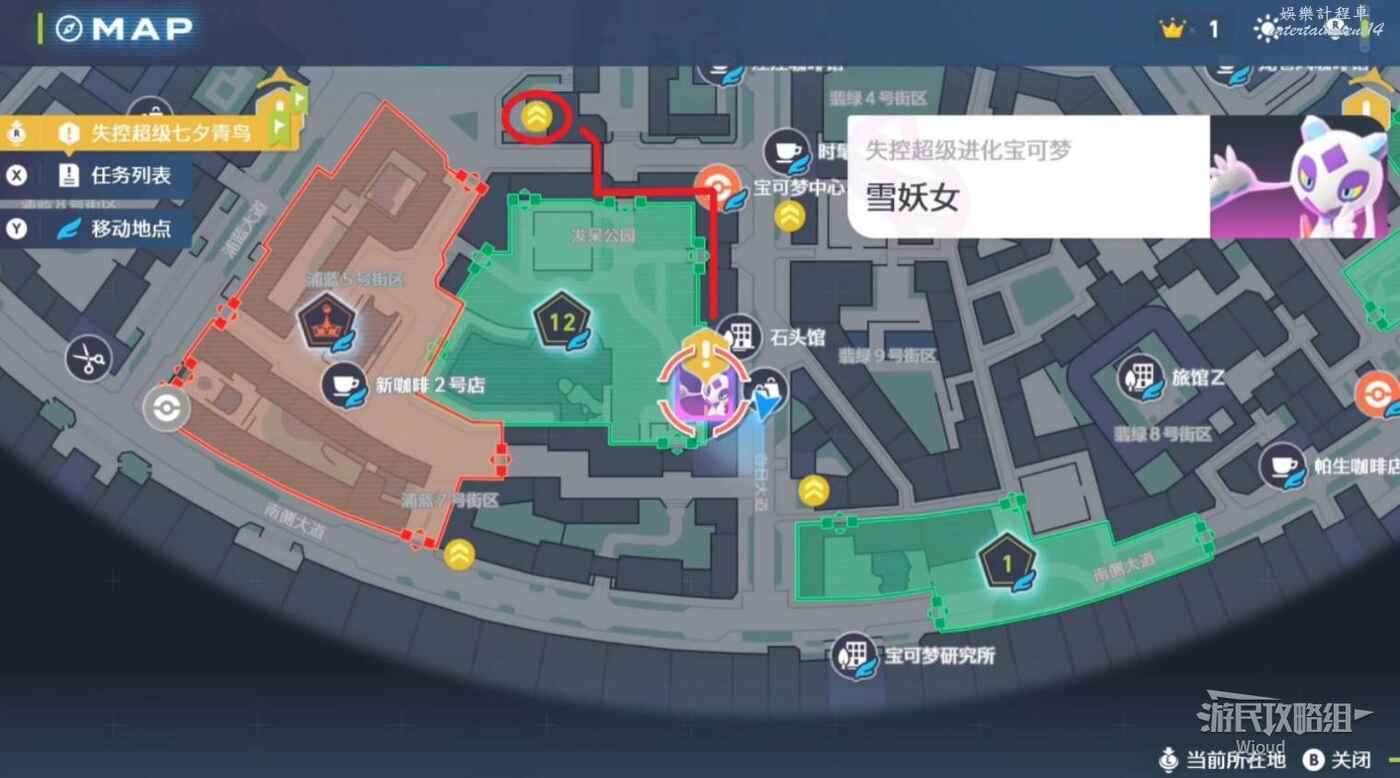 沿著下圖路線走到主線指引處和皙白、沐淨匯合,配合他們幹掉一波寶可夢。