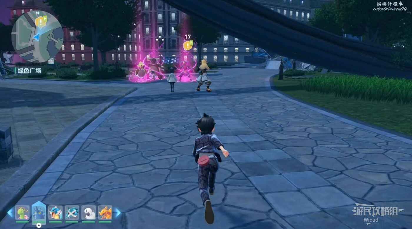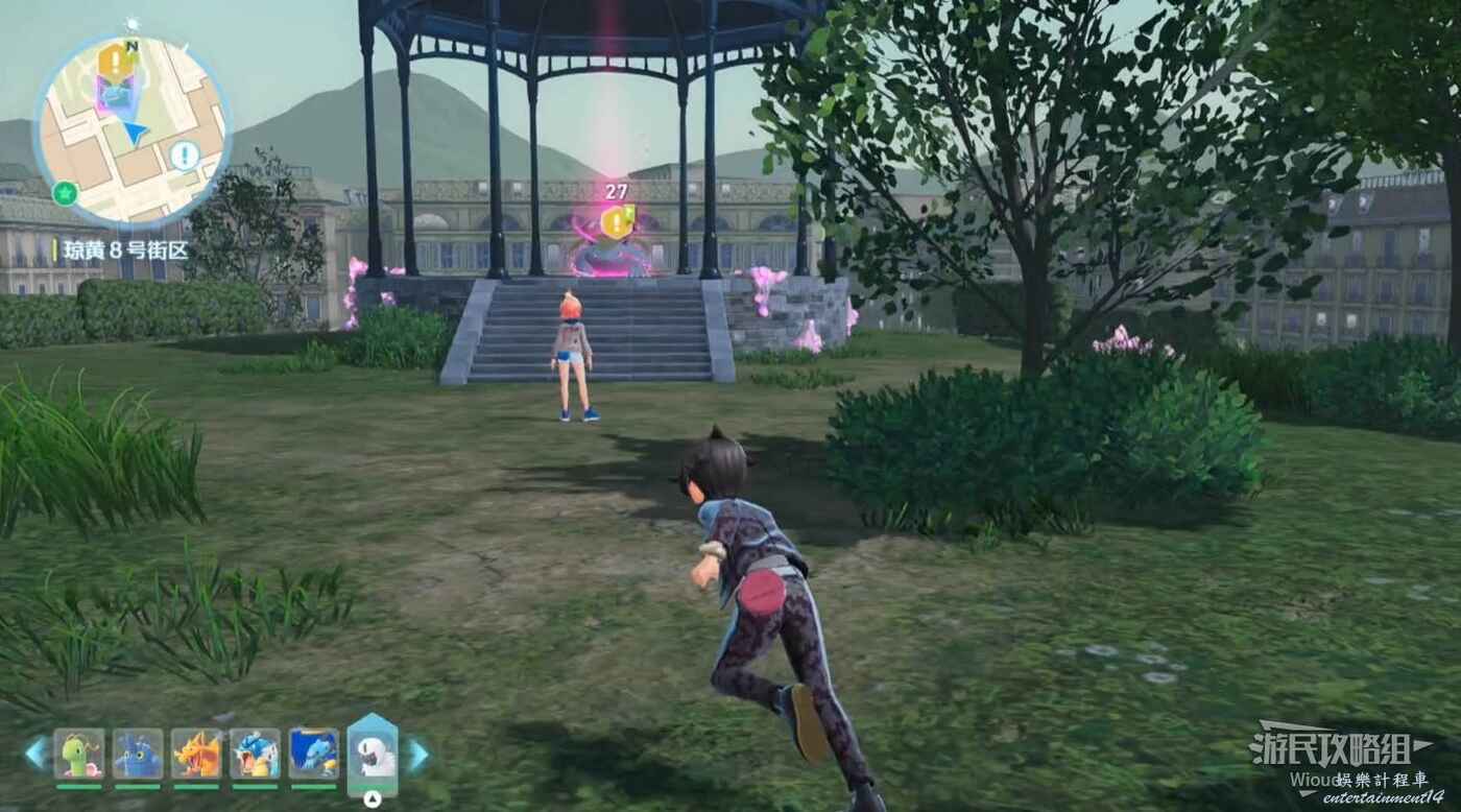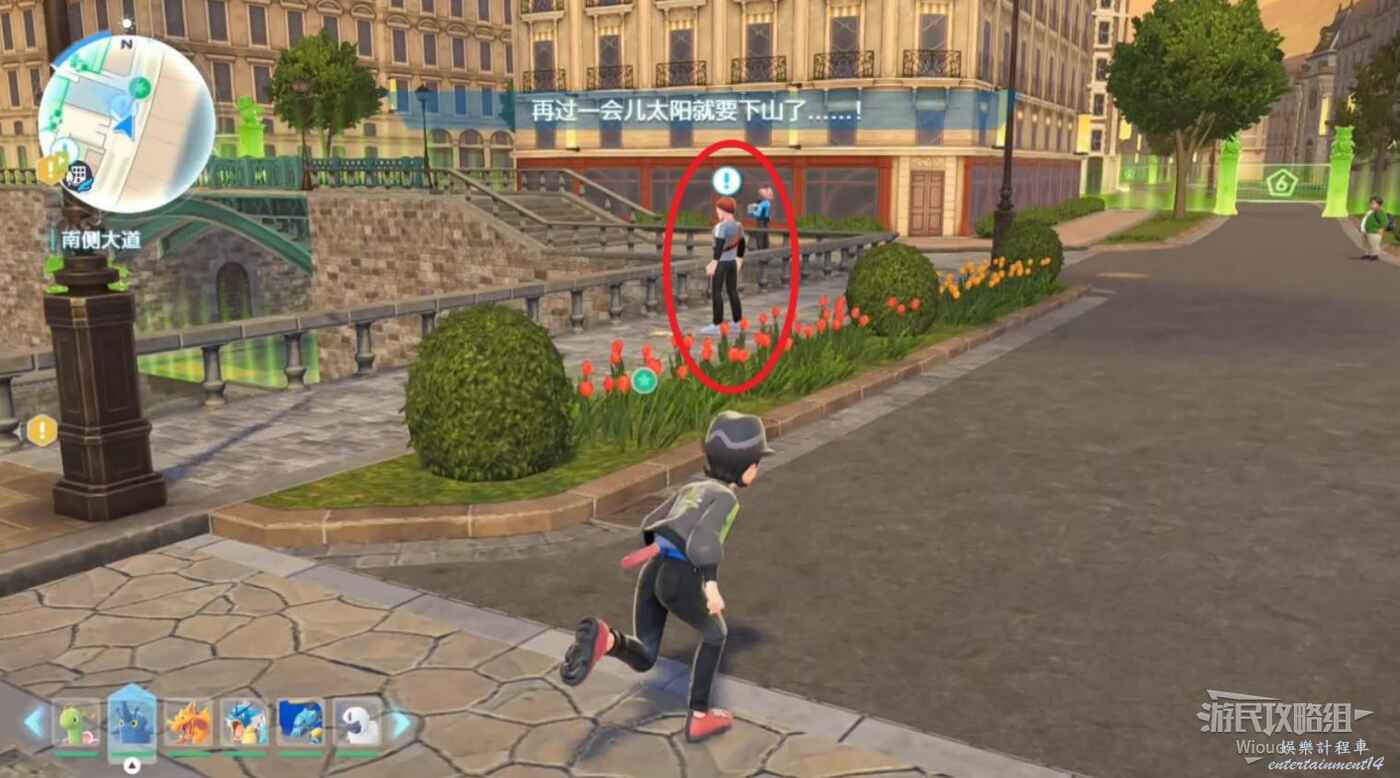 沿著下圖路線走到主線指引處和皙白、沐淨匯合,配合他們幹掉一波寶可夢。
