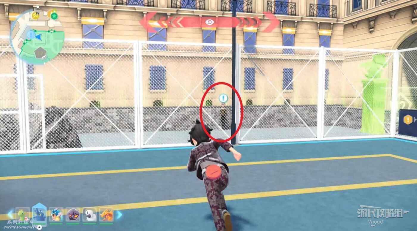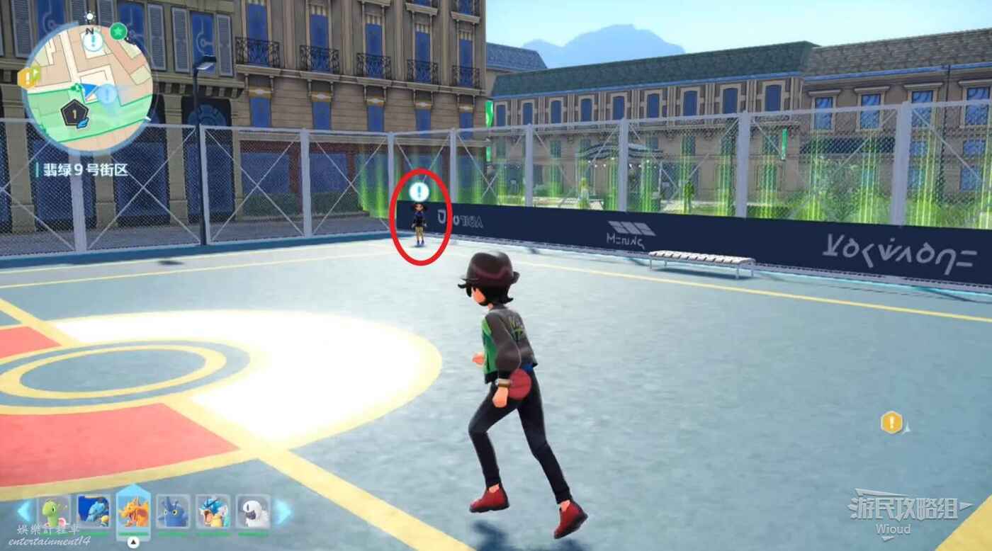 任務接取位置如下圖所示,過去和寶可夢對戰場的NPC對話,進行寶可夢對戰。