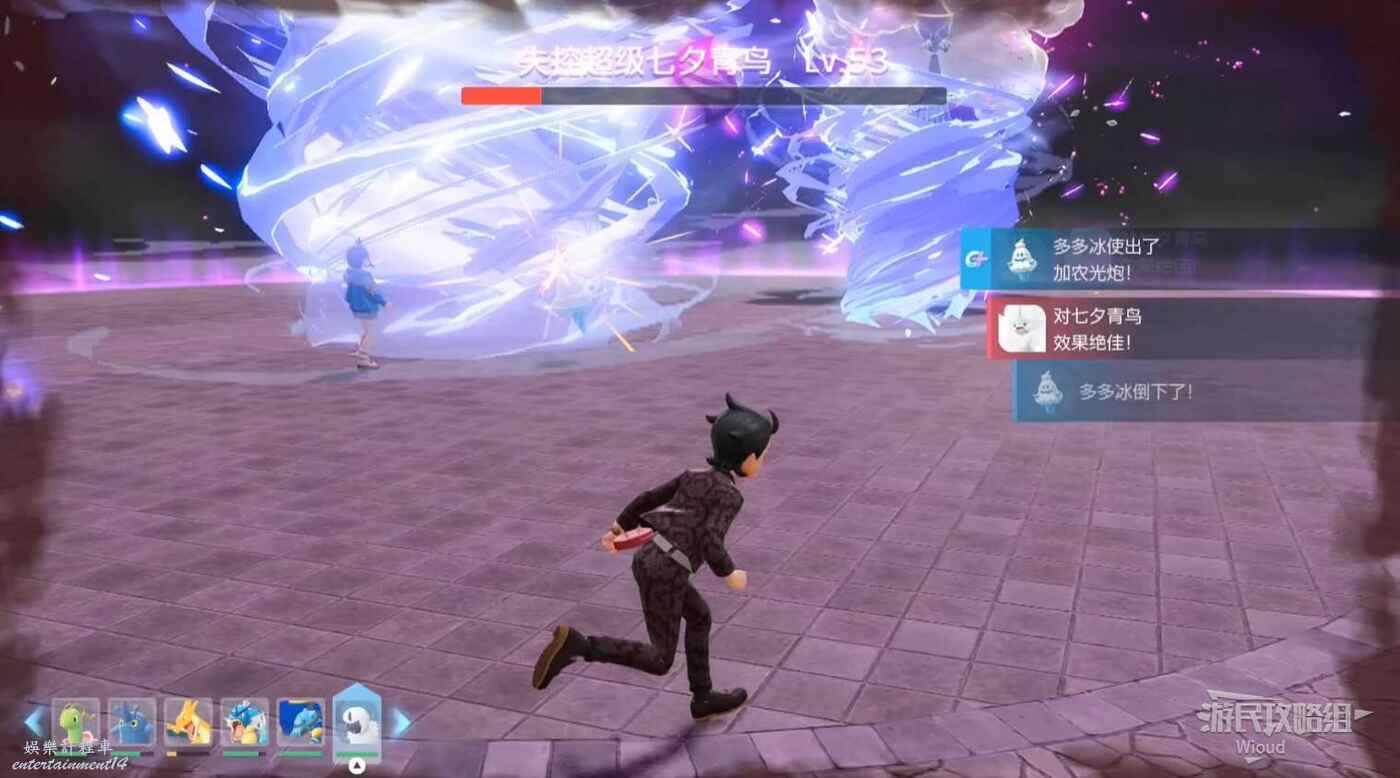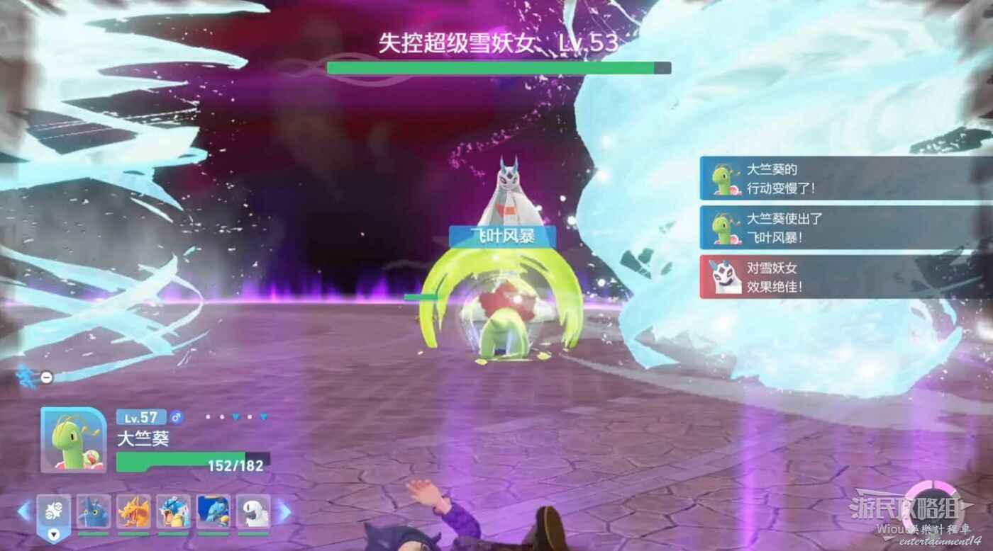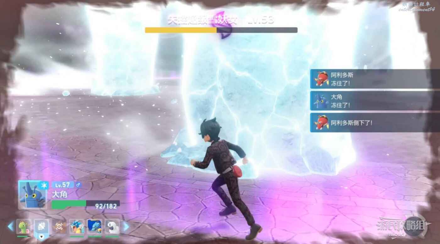 當敵人蓄力時,場景會出現幾個大冰塊,在敵人攻擊時收回寶可夢躲到冰塊後面。
