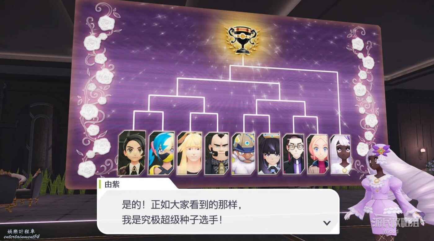 積攢對戰點數,傳送到【秀麗世大酒店】進去觸發劇情,需要打一波比較長的比賽才能和由紫對戰。