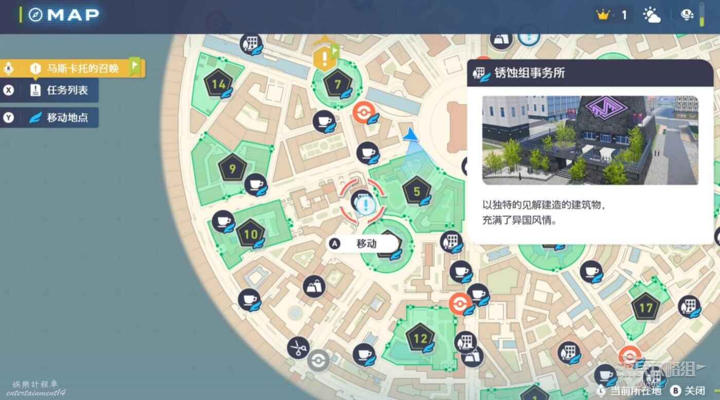 走到指定處的大酒店觸發劇情,得到新的失控寶可夢資訊,移動到旅館Z開作戰會議。