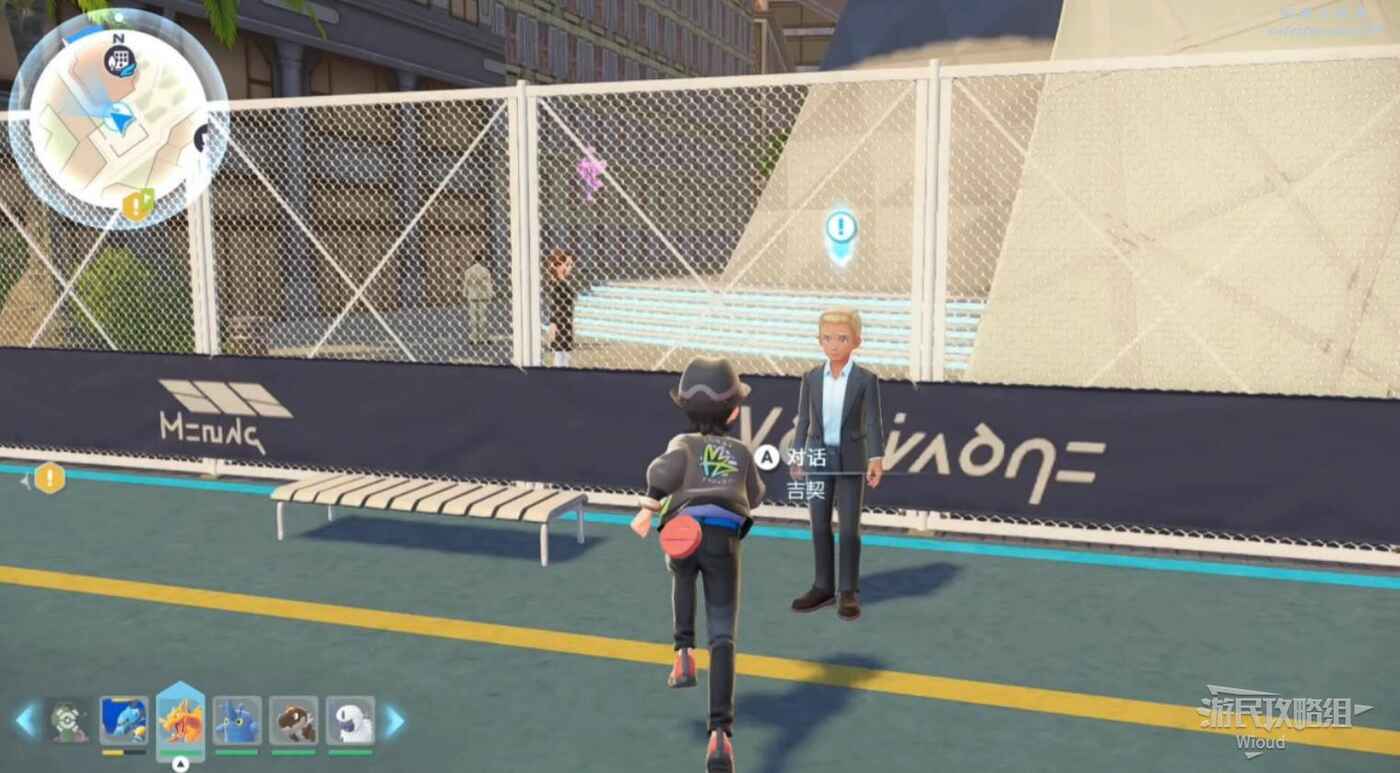 走到主線指引處和銹蝕組的人對話,和【吉普索】對話並進行一次寶可夢對戰。