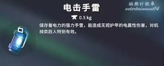 總結:電擊手雷是前期缺乏對機械單位特攻的一個助力,但是往往獲取的實際時候比帶電mp7更晚導致處境尷尬,且前期中期並不需要頻繁面對機械類怪物。