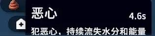 糞球能造成流水水分和能量的噁心狀態還有上一層弱毒,弱毒最高疊到15層,每跳15點傷害,可以配合噗噗槍&噗噗噴使用。