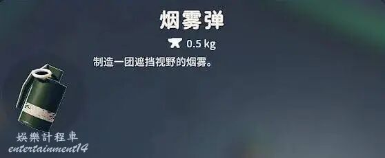 前期能解鎖購買,能用來消除怪物的仇恨從而止血治療進箱子等一些列操作,也可以變身煙中惡鬼。但是缺點是投擲後引爆時間太長,從而可能延誤戰機。