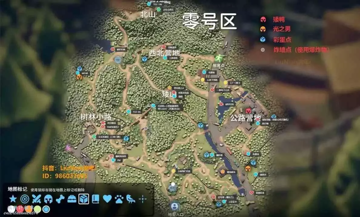 可以看到零號區的光之男刷新位置,一個在左上角,另一個在公路旁。