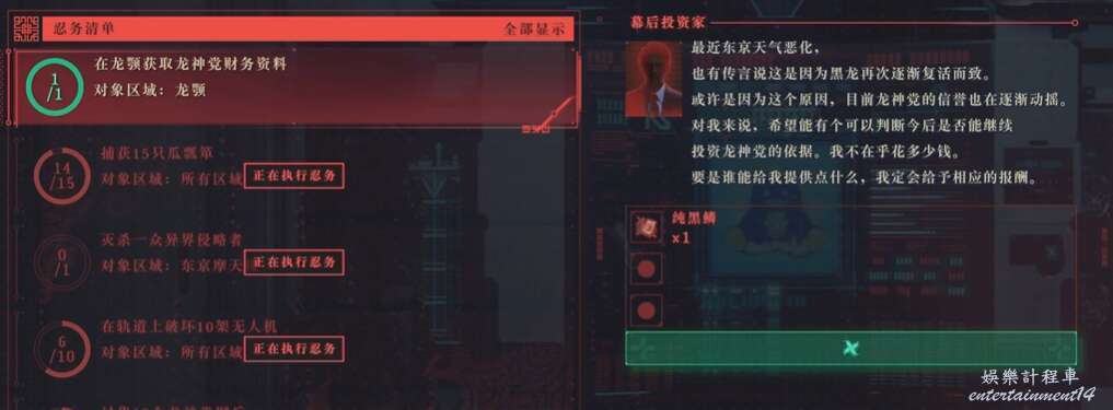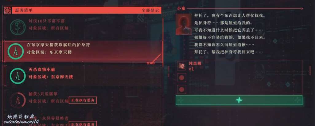 看到這個雨傘,後面有條錄可以獲得任務道具,交任務,獲得黑鱗