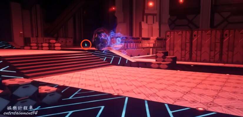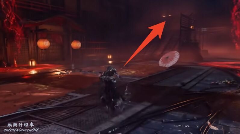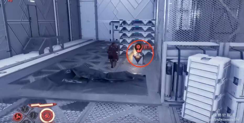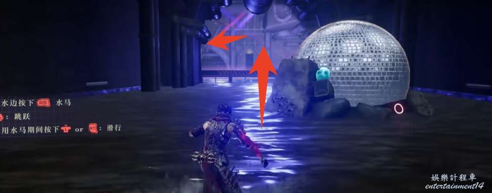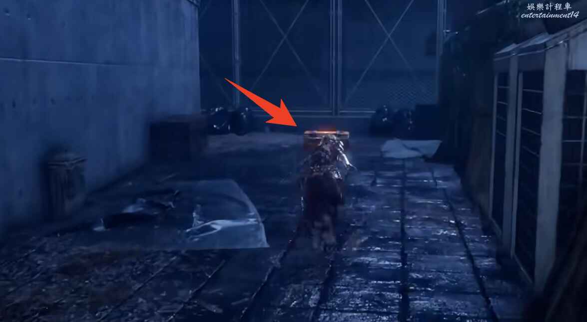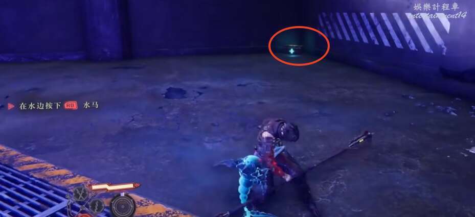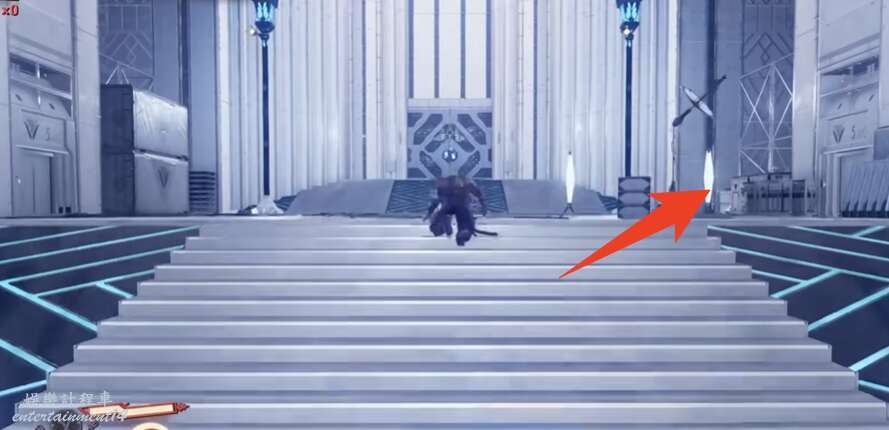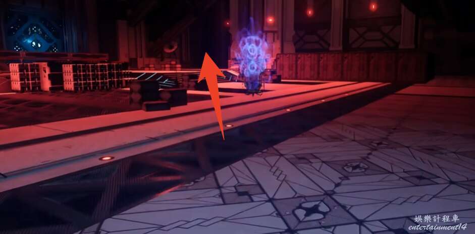 來到下圖位置往箭頭方向走,標識物看左邊的藍色門