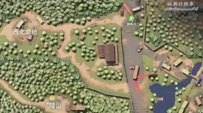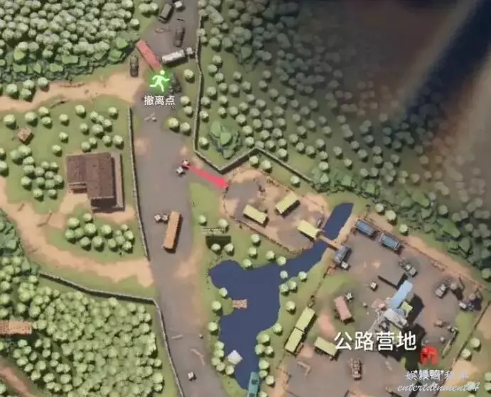 地圖上面有兩條公路,任務目標在右側最長這條,物品在快到撤離點的黃色大巴上,給大家貼個圖。