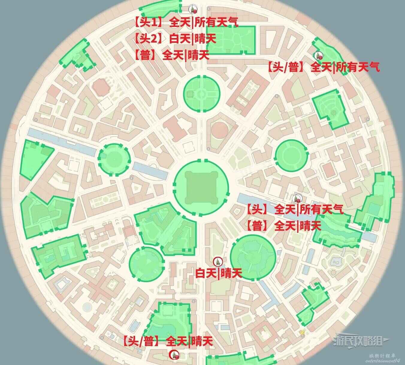 另外幼基拉斯在密阿雷市內的位置請參考下圖,大多都出現在高處。