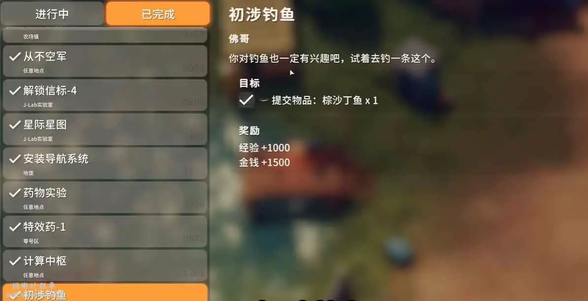 逃離鴨科夫 (Escape from Duckov) 初涉釣魚完成方法 25 10 月 2025-10-25 廣告 來源:互聯網 這個任務提示: 你對釣魚也一定有興趣吧,試著去釣一條這個。 要求是提交物品:棕沙丁魚×1,那就是要去刷新棕沙丁魚的地方釣到一條魚。 這個棕沙丁魚是非常常見的魚,在任何時間任何地點都會刷新,這裡推薦去零號區左上角碼頭釣。 釣魚方法:把魚竿放到自己的近戰武器上,然後把魚餌放上去,之後看見釣魚點,切換成近戰按下F即可。 感嘆號指的是魚馬上就要上鉤,等兩個圓圈重合的時候按一下空格完成收杆。 完成任務,獲得獎勵經驗+1000、金錢+1500。