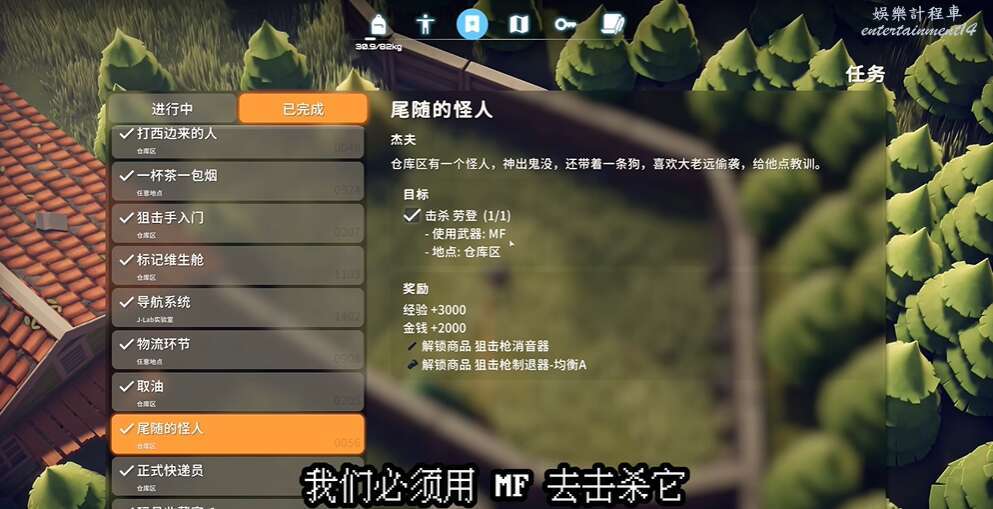 倉庫區的boss牢登,他用的是一把狙擊槍,喜歡在遠處狙人,順帶還有個任務提示我們必須用MF去擊殺他