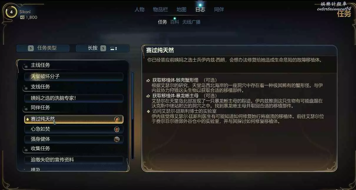 接下來任務日誌應該是這個格式,大家如果沒有選擇錯對話那就是跟我一致的